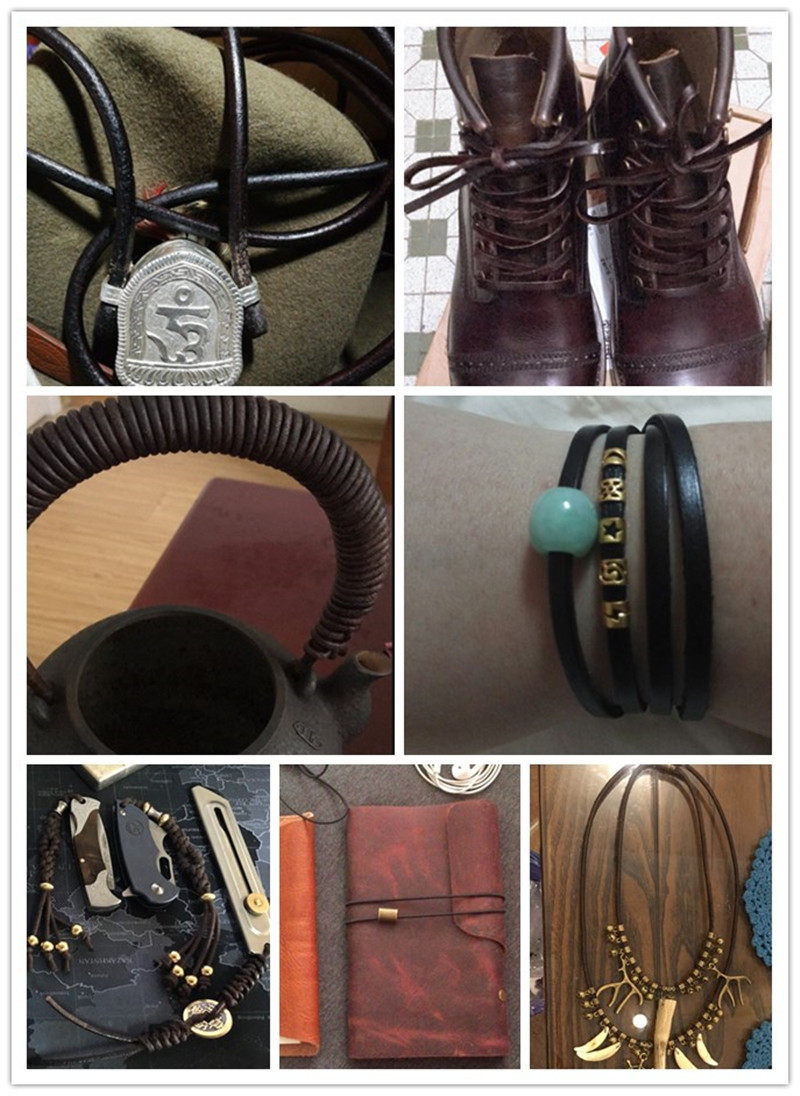 Pure cowhide rope diy accessories black brown color round cowhide rope real cowhide multi-Specification