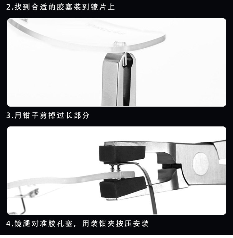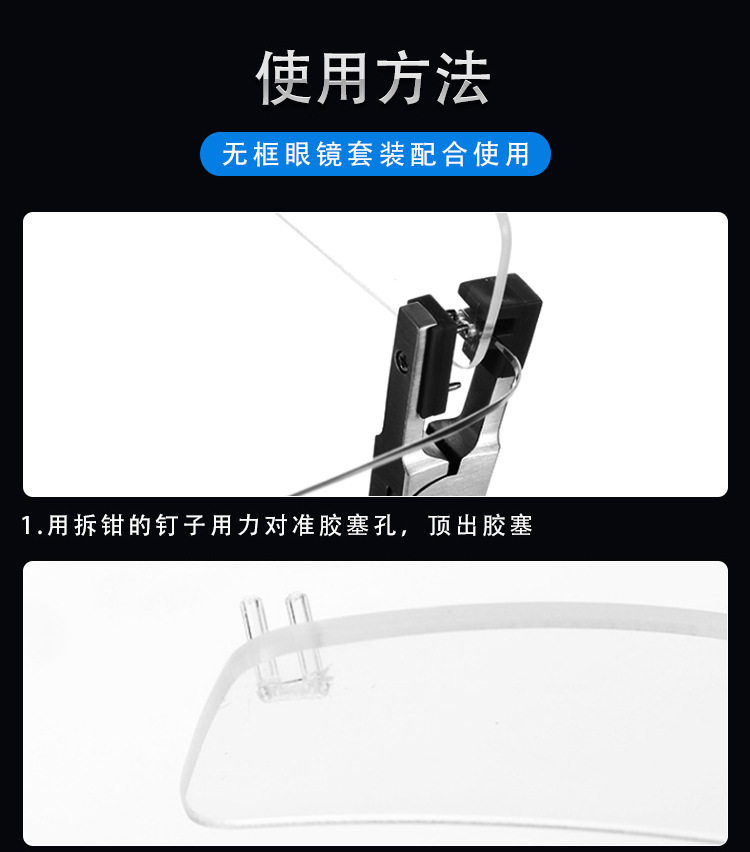 General conventional rimless buckle double rubber plug rimless glasses frame plastic plug glasses Accessories Wholesale