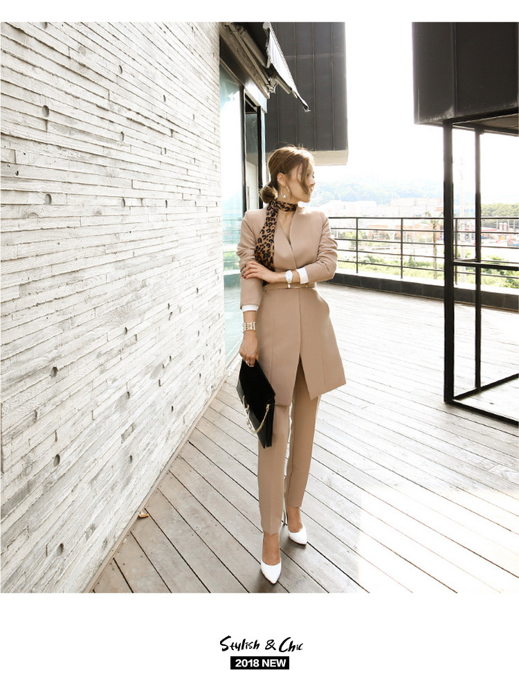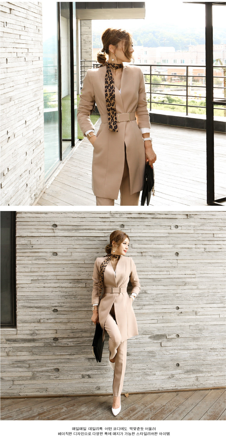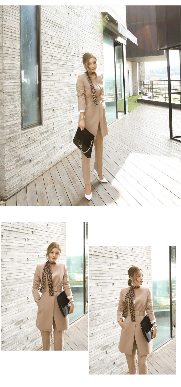 Suit Set 2025 Autumn New Arrivals Korean Style Slimming and Elegant Jacket + Slim-Fit Fashionable Trousers Two-Piece Set with Scarf for Women
