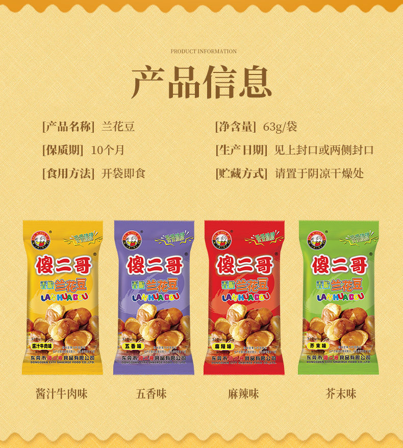 | Flavor | 63g orchid beans [five flavors],63g orchid beans [spicy flavor],63g orchid beans [beef flavor],63g orchid beans [mustard flavor] |
