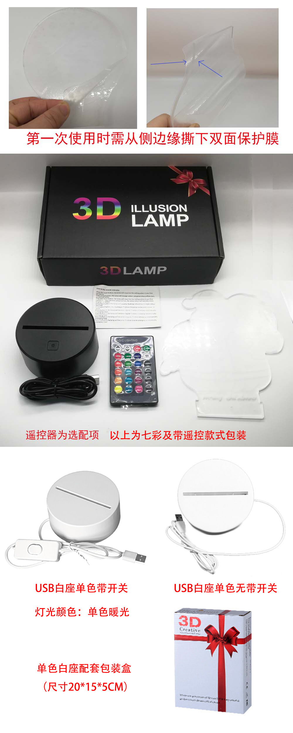| Light Color | Black Seat Colorful: Touch,Crack Colorful: Touch,Black seat colorful: Touch +16 color remote control,Crack colorful: Touch +16 color remote control,USB white seat monochrome full set with switch,USB white seat monochrome full set without switch |