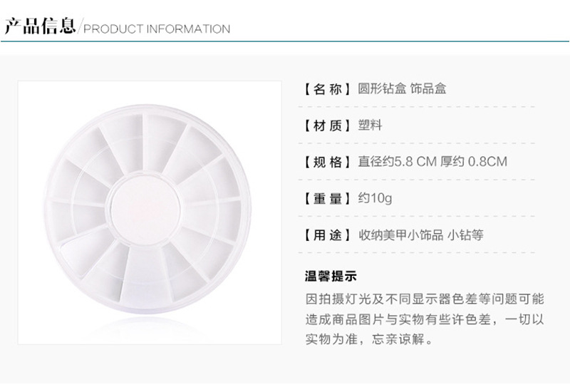 | Specifications | (D2-309/310)12-grid round empty box,Add Chinese logo (unit price plus 0.1 yuan, contact to change the price note) |