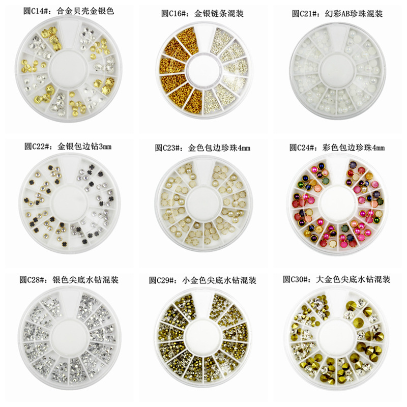 Nail jewelry box 12-grid disc detachable small pearl box rhinestone plate rivet sealed rotating easy-to-use packaging material