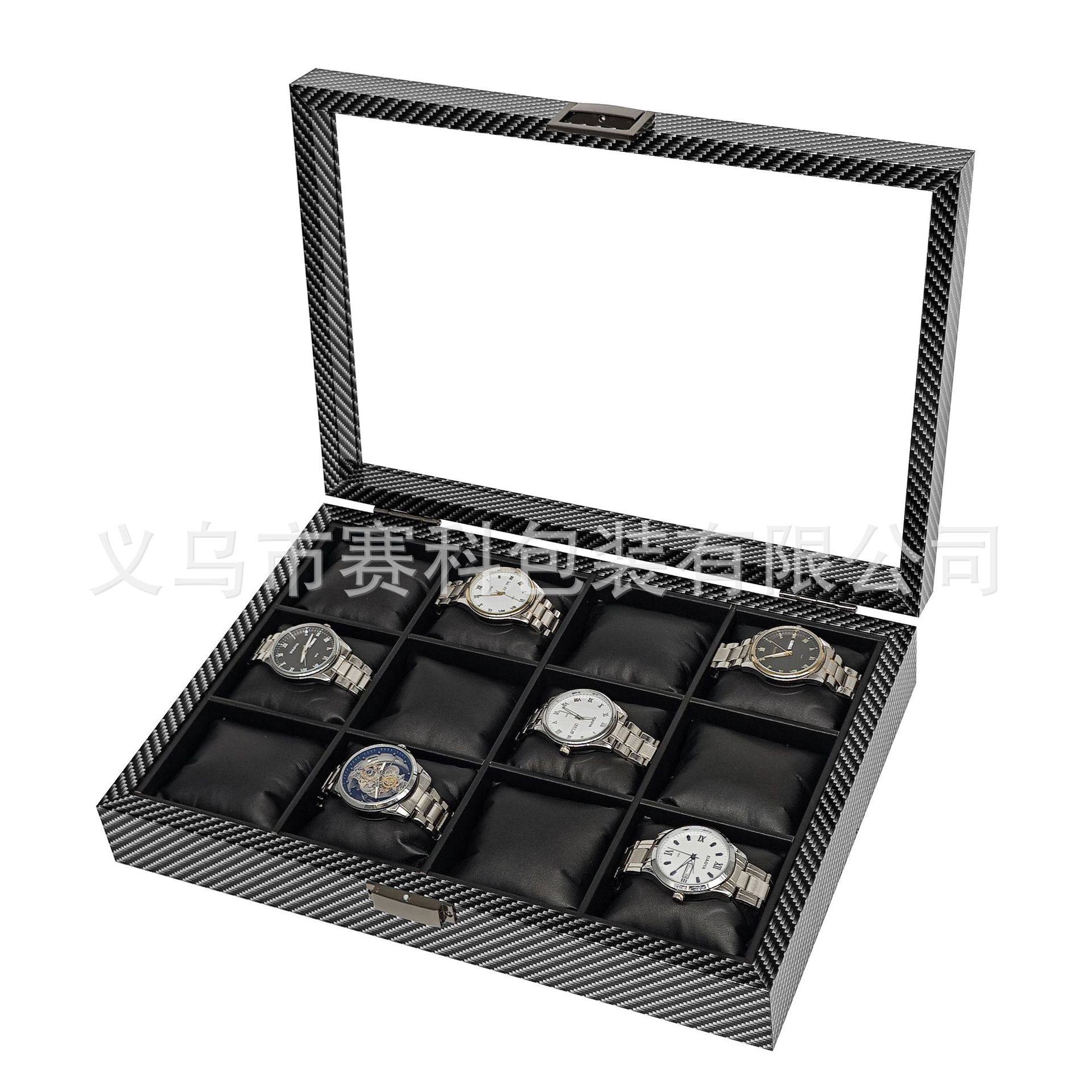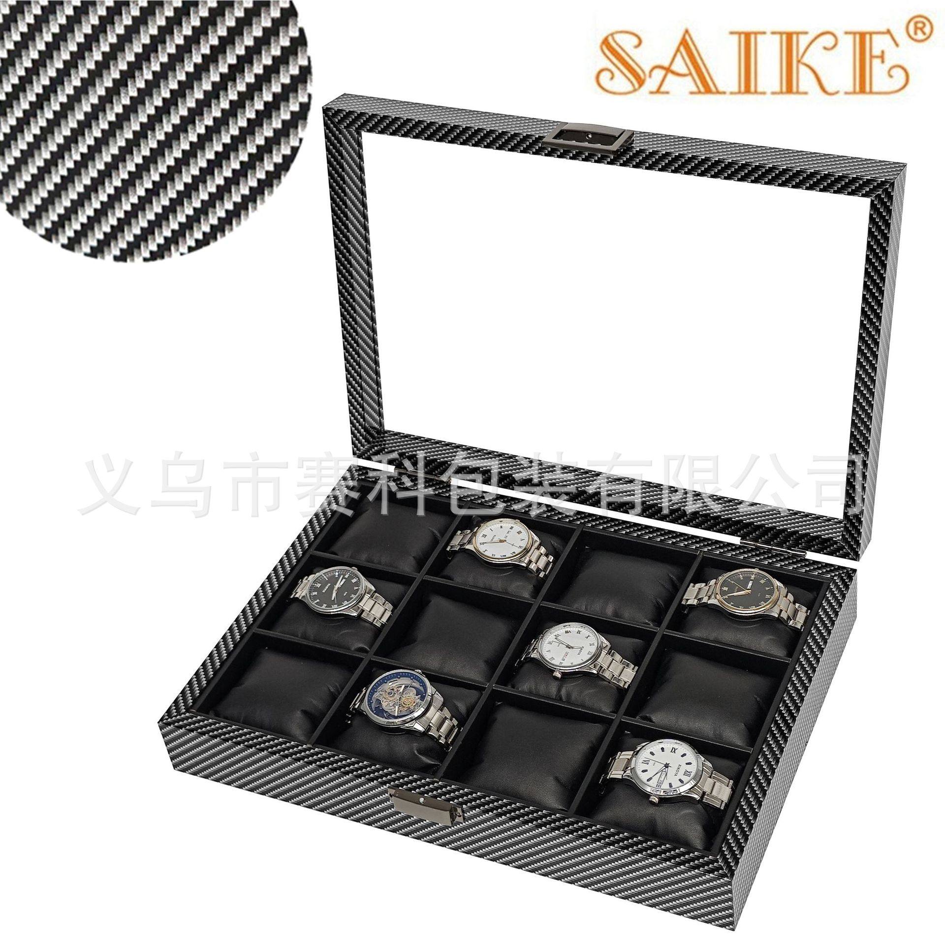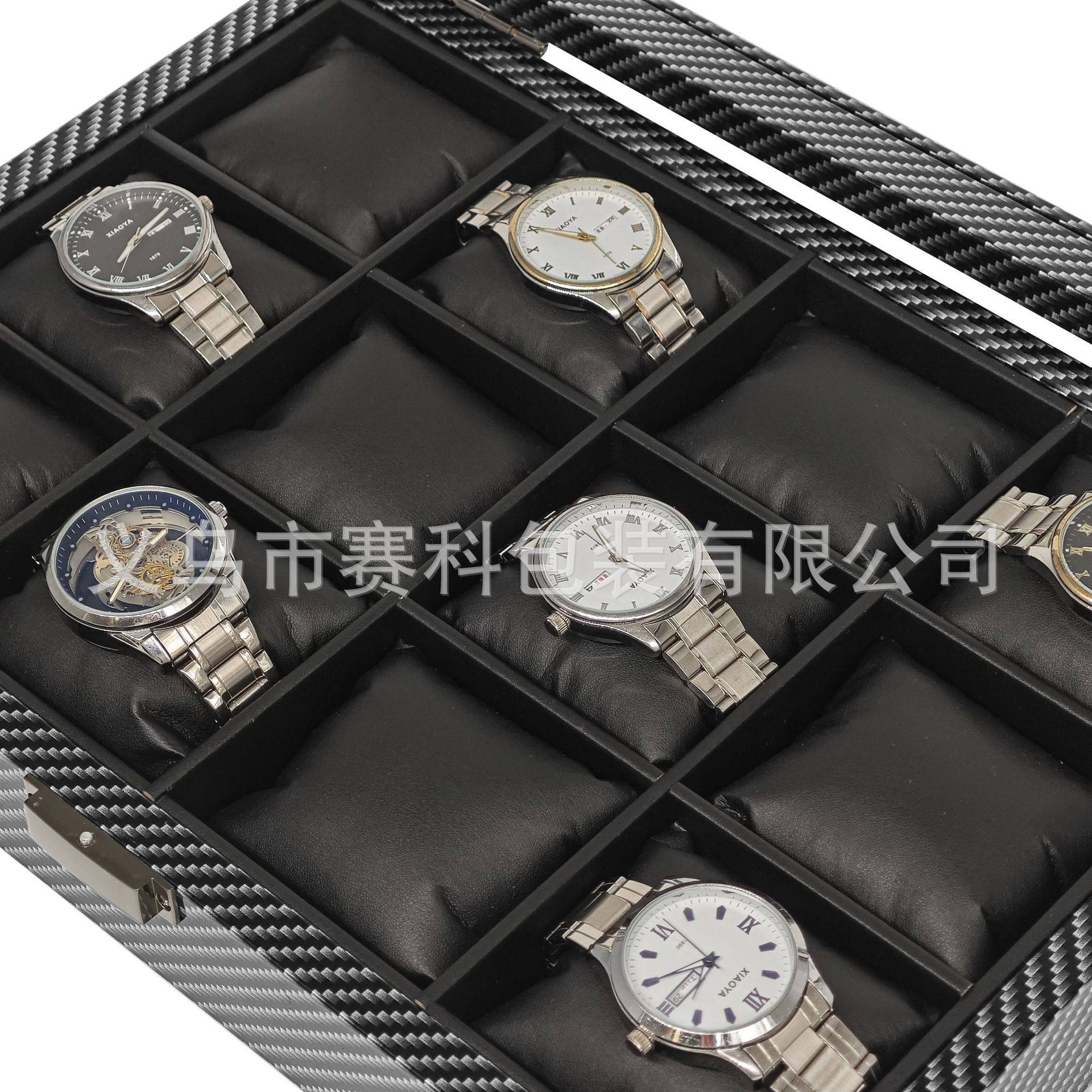 in stock wholesale carbon fiber grain wood silk cotton pillow 12 watch storage collection display box 12 watch box