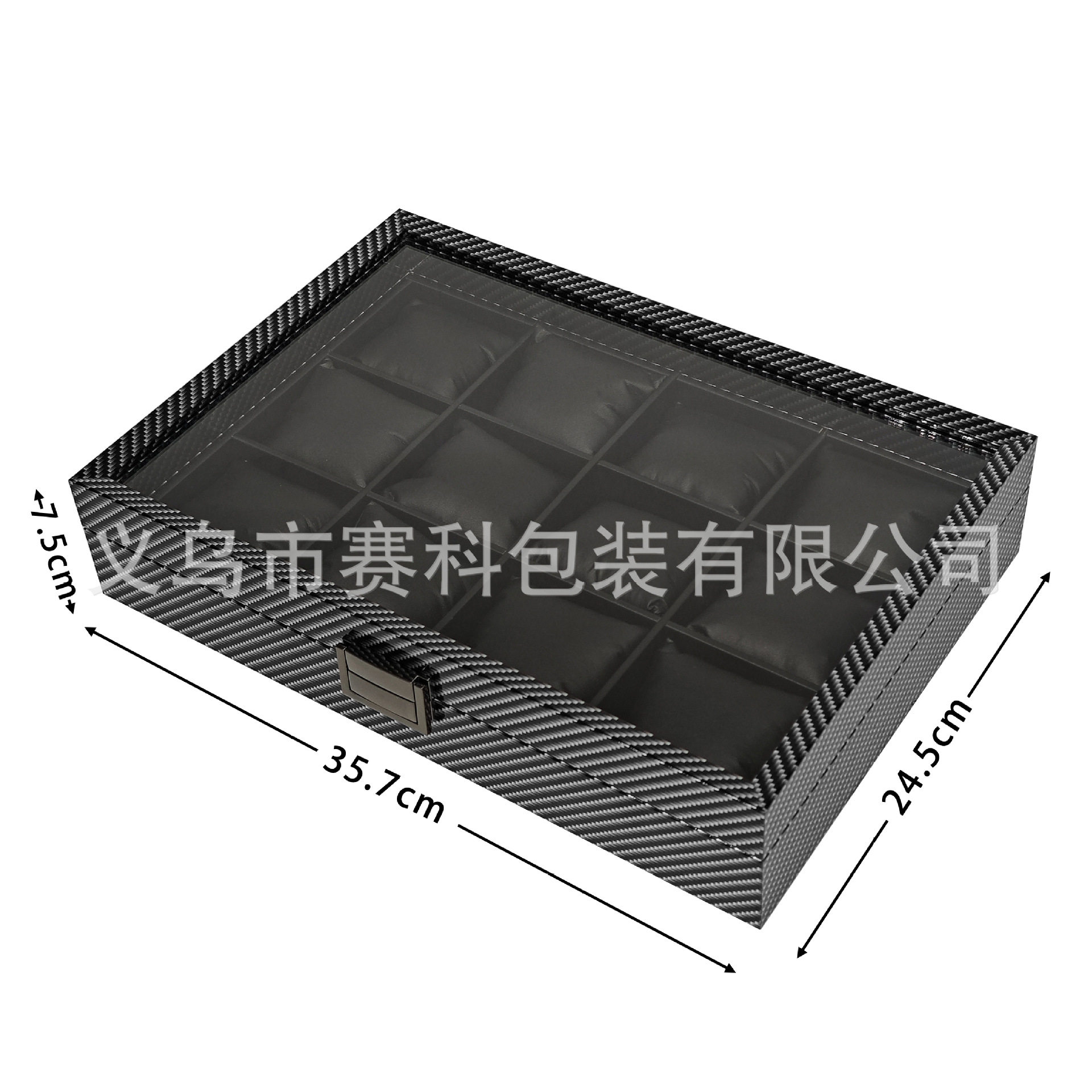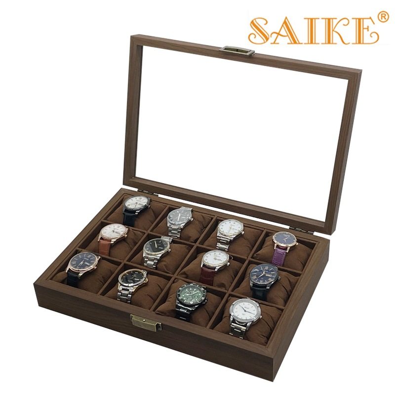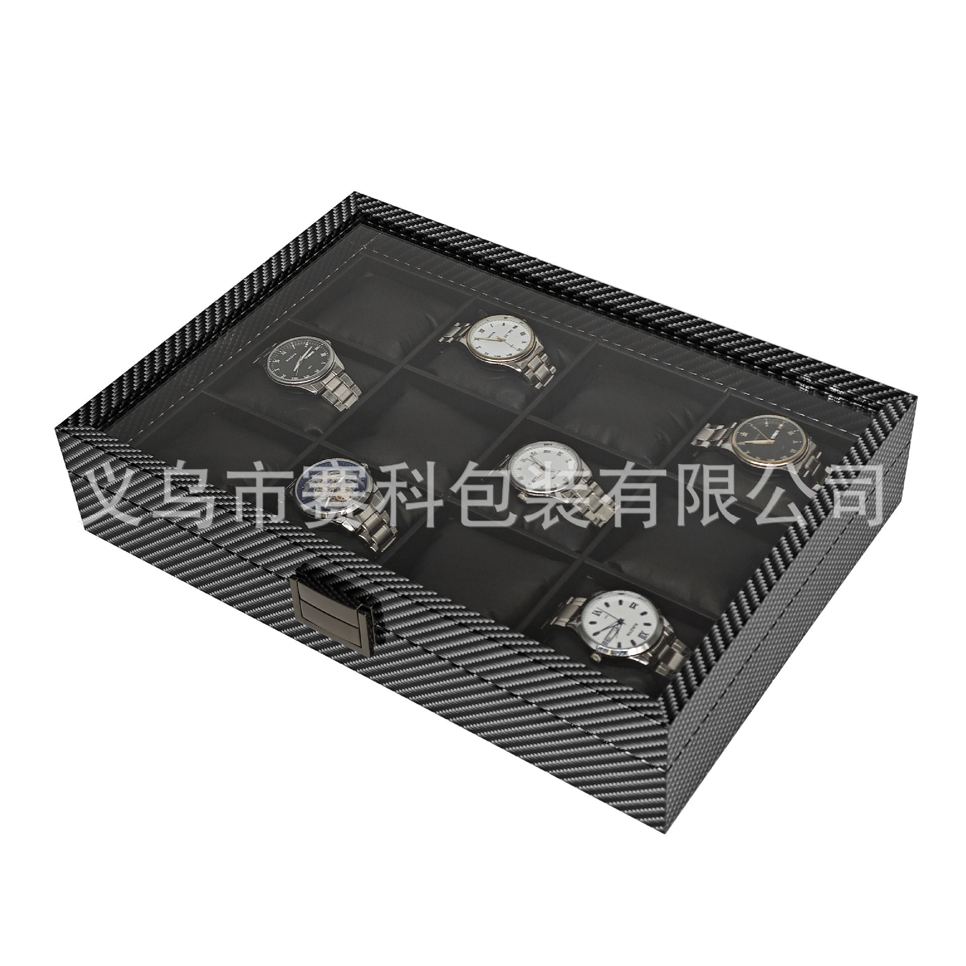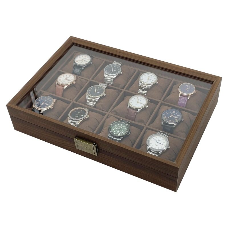 in stock wholesale carbon fiber grain wood silk cotton pillow 12 watch storage collection display box 12 watch box
