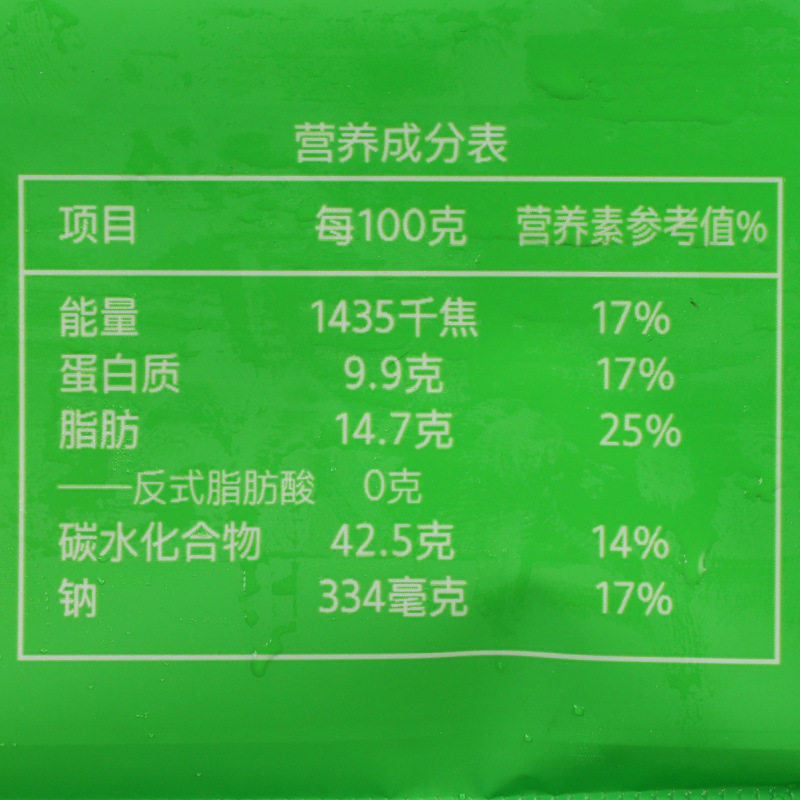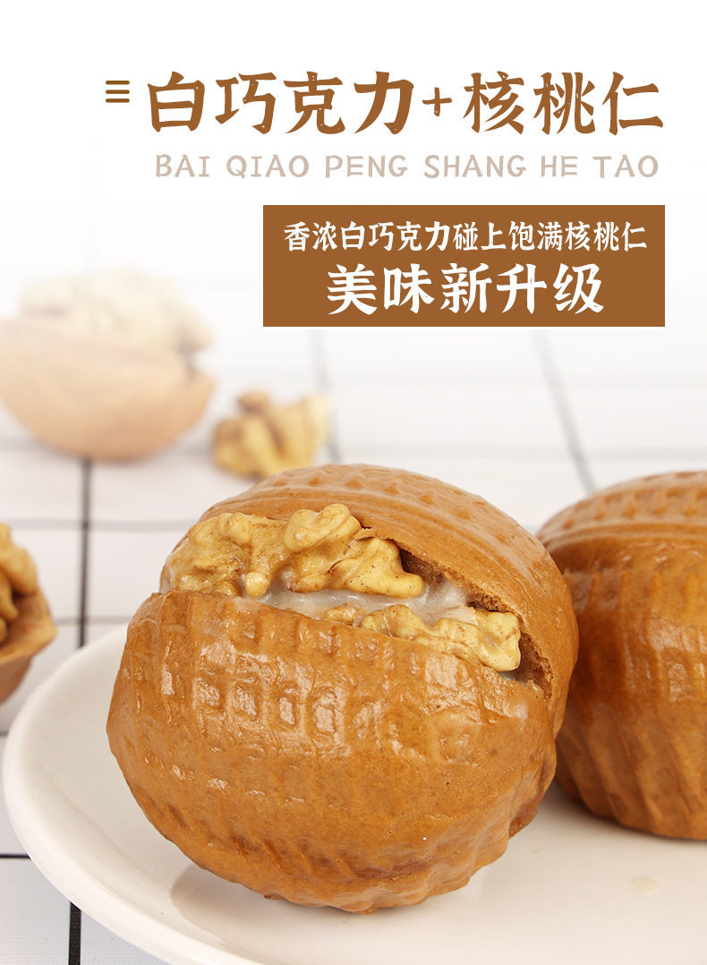 | Raw materials and ingredients | Wheat flour, drinking water, white chocolate, walnut kernel (≥ 7.5%), red sugar, cheese powder, vegetable oil, white sugar, edible processing yeast, etc. |