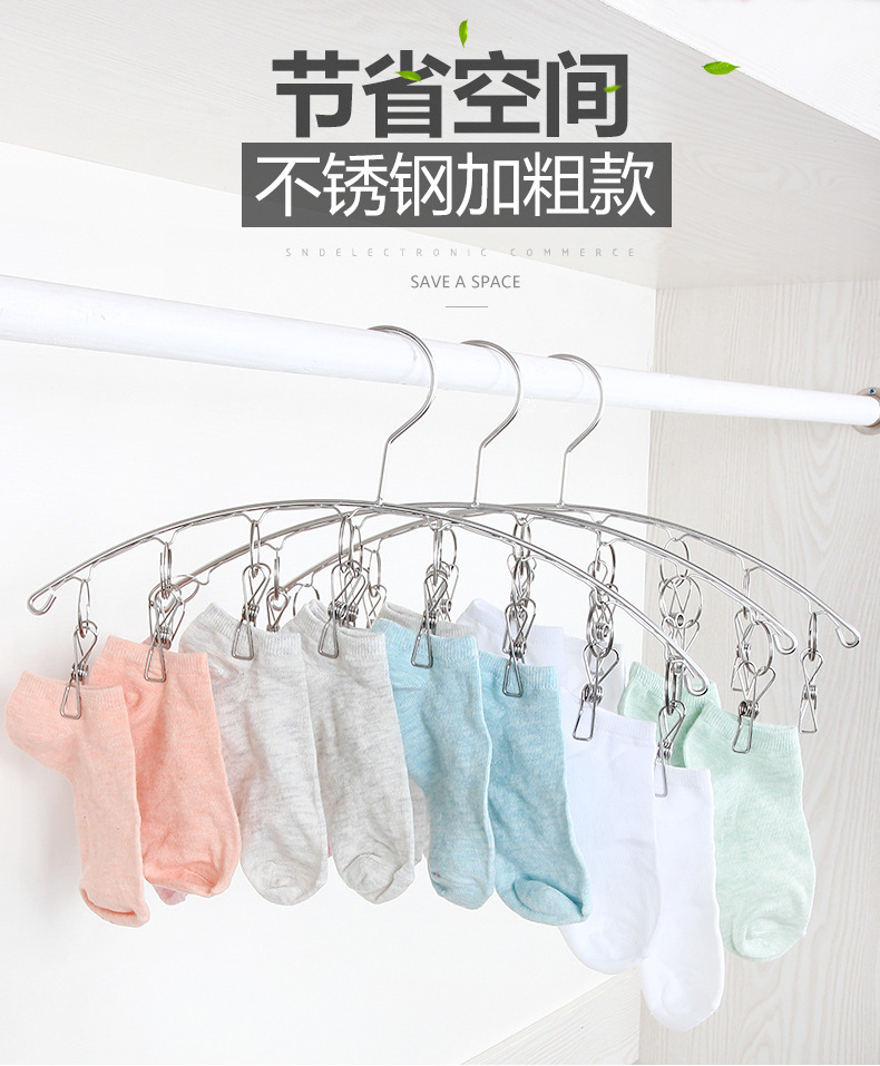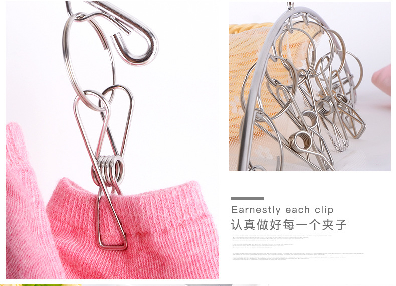 Drying Rack Multi-clip Household Hanging Clothes Stainless Steel Drying Socks Clip Dormitory Windproof Multifunctional Drying underwear Socks Clip