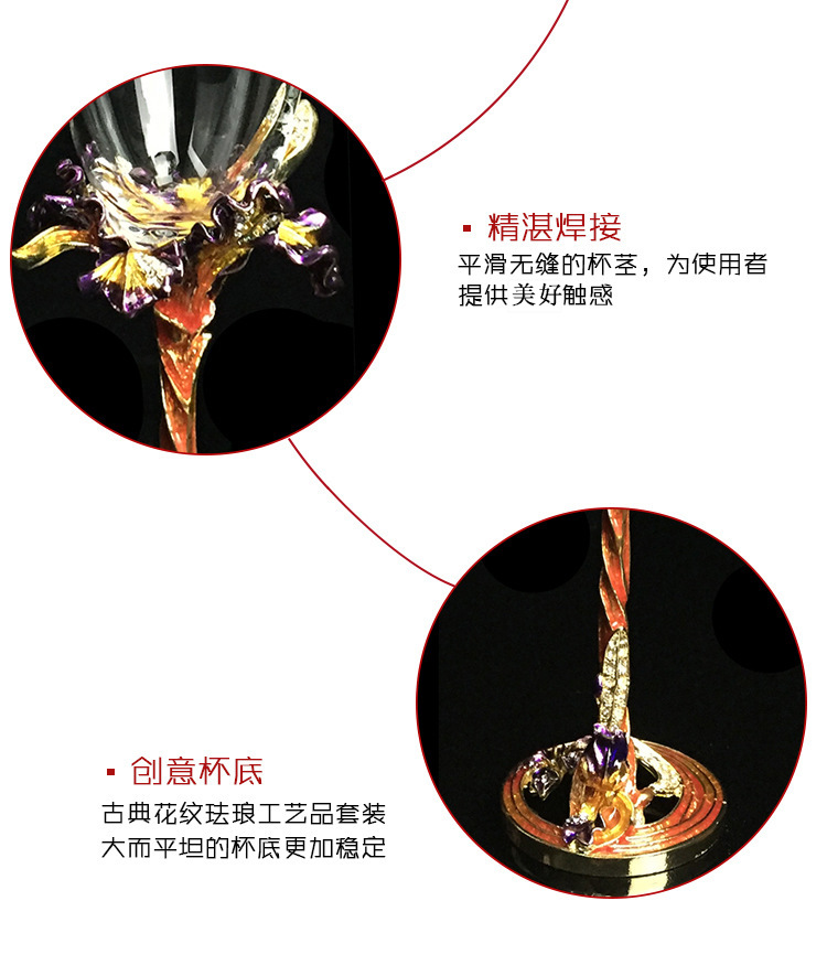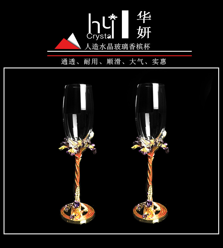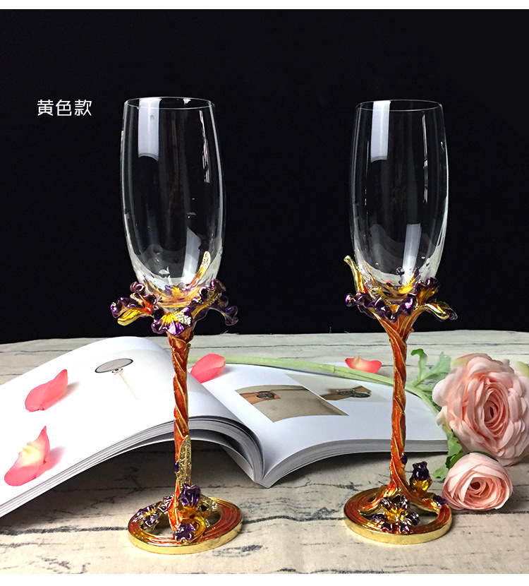 Hua Zheng Yan Iris Carved Champagne Cup Enamel Color Crystal Crafts Creative Business Gift Home Gift Set