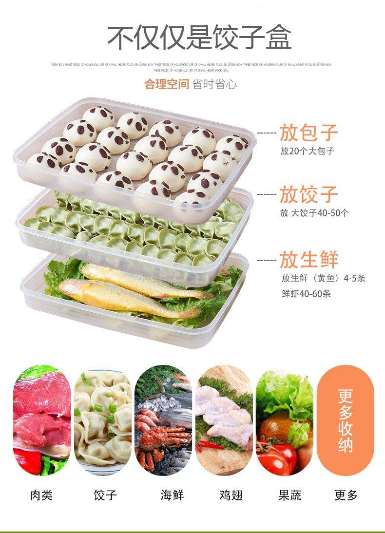 Dumpling Box Can Be Stacked with Large Household Refrigerator Crisper, Quick-Frozen Dumplings, Non-Stick Bottom Dumpling Tray, Food Storage Box