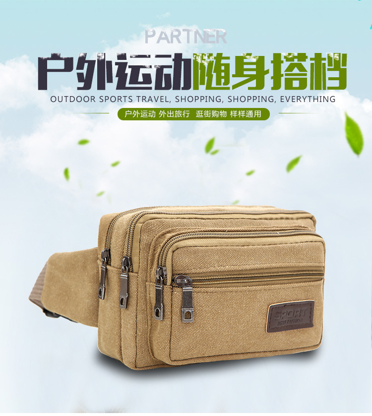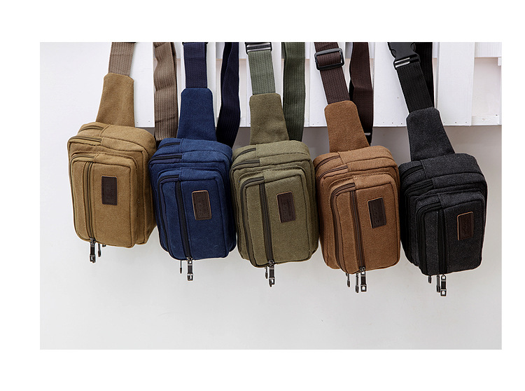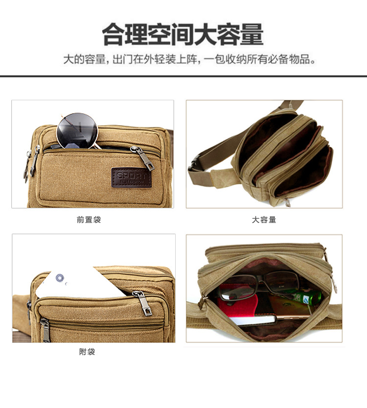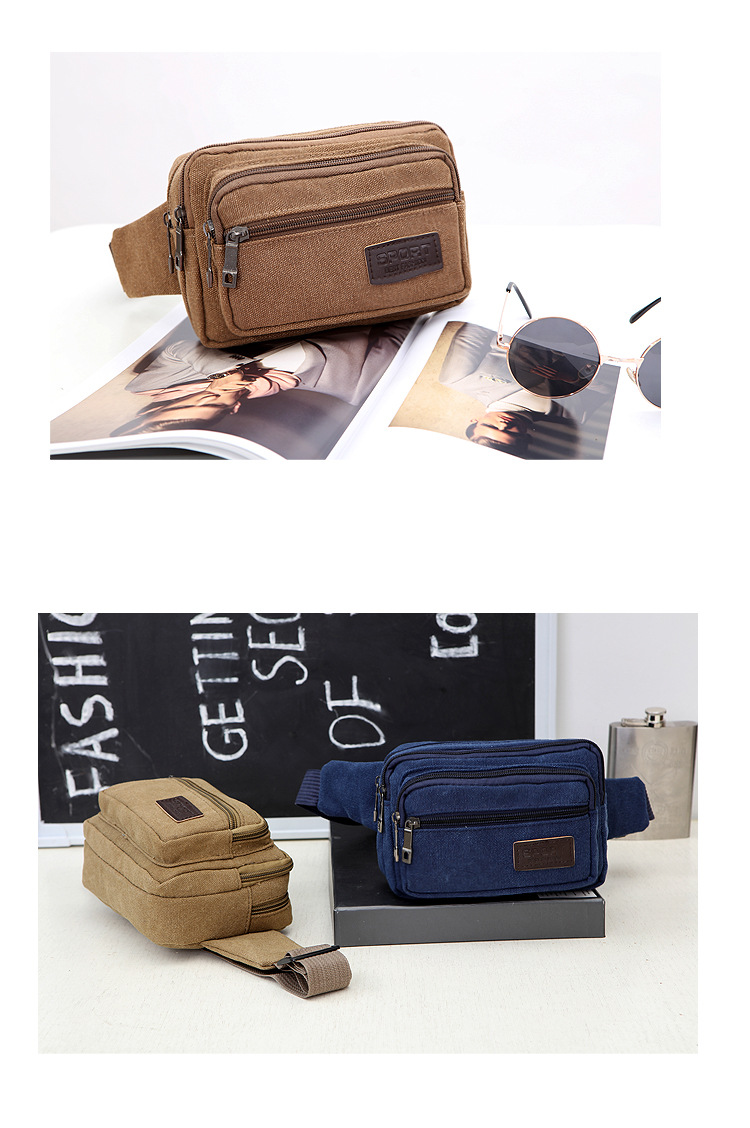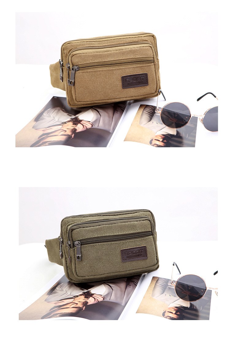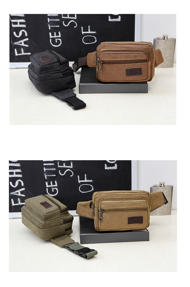 Men's Canvas Waist Bag Manufacturer Wholesale Outdoor Sports Multi-Functional Diagonal Small Square Bag Coin Purse Street Stall Supply
