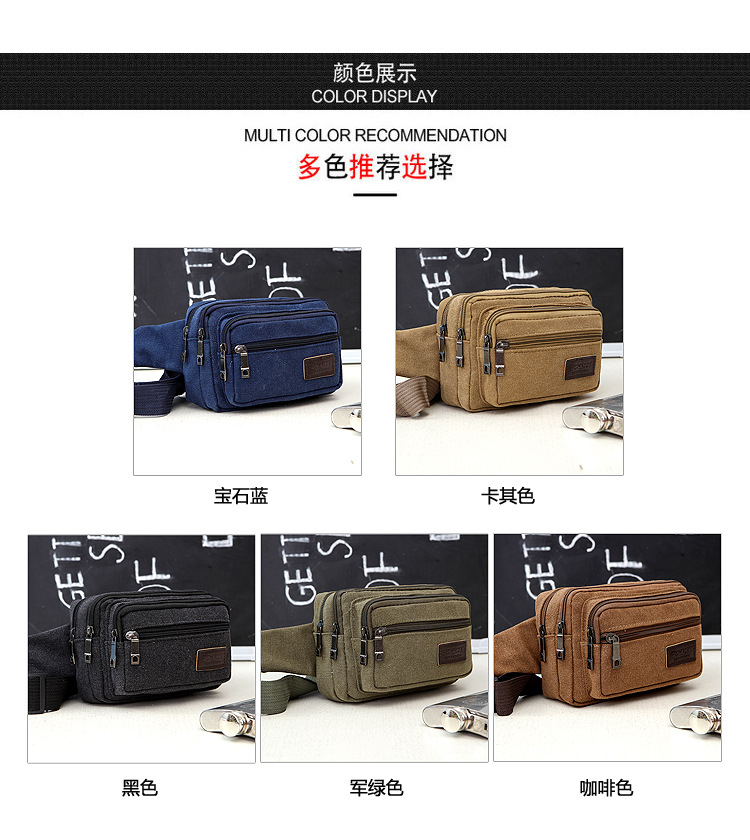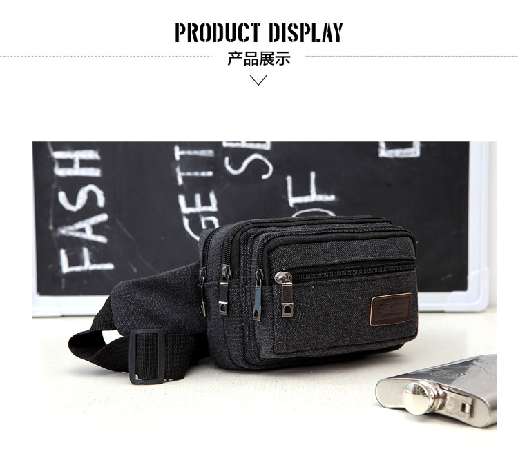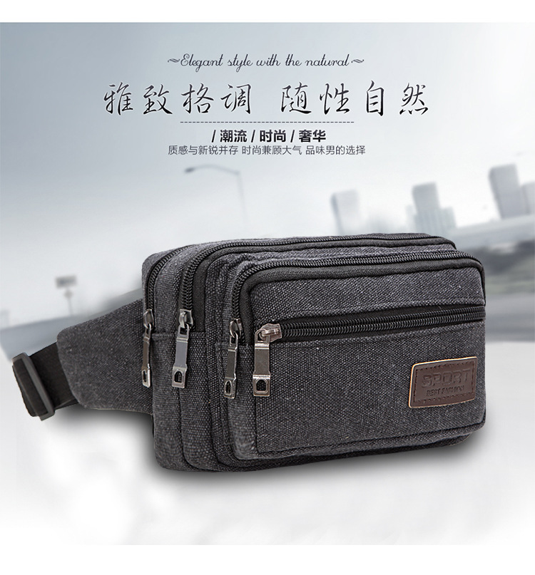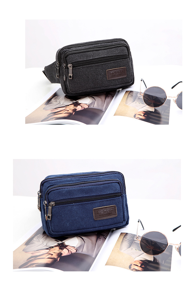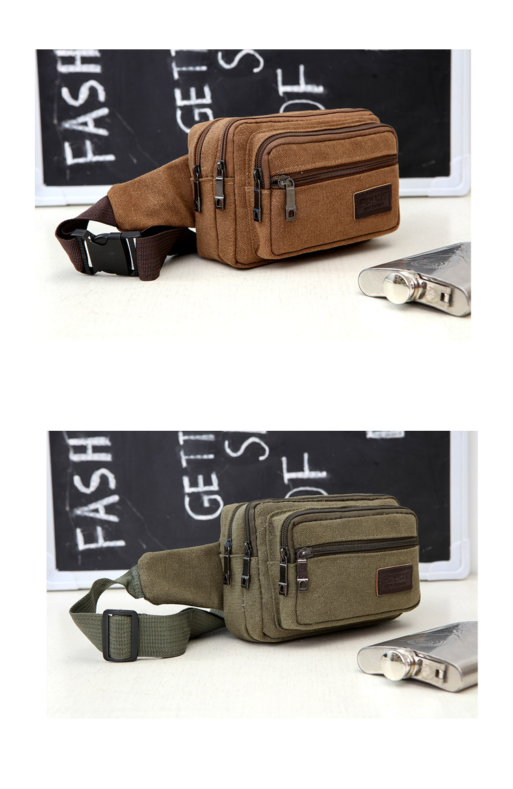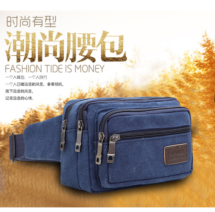 Men's Canvas Waist Bag Manufacturer Wholesale Outdoor Sports Multi-Functional Diagonal Small Square Bag Coin Purse Street Stall Supply