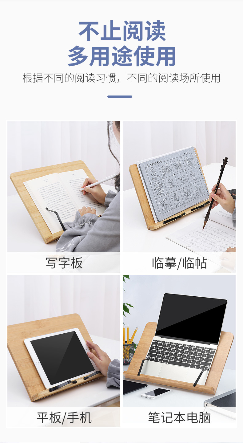 Chinese Style Bamboo Wooden Book Rack Desktop Reading Rack Bookshelf Post-reading Rack Scripture Book Reading Bookshelf Copybook Rack Large Size