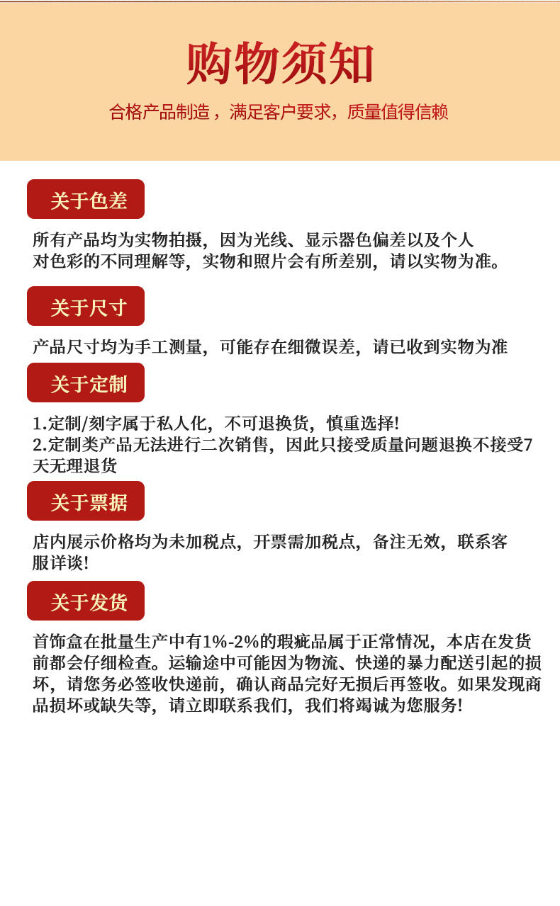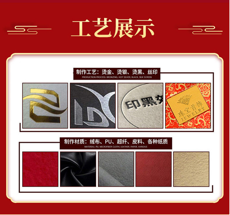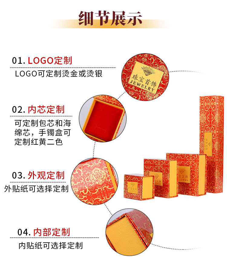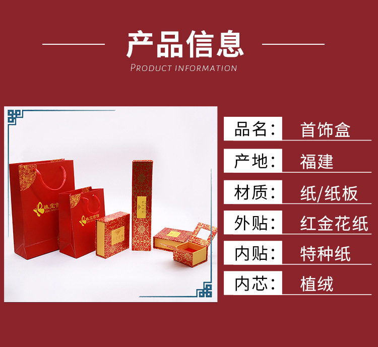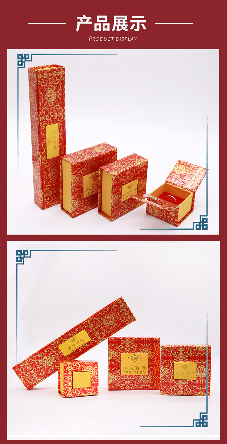 | Specification model | Red gold flower box * ring box,Red gold flower box * pendant box,Red gold flower box * bracelet box,Red gold flower box * necklace box,Red gold flower box * jewelry handbag,Printing box * ring box,Printing box * pendant box,Printing box * bracelet box,Printing box * necklace box,Printed box * jewelry handbag,Leather-filled jewelry box * ring box,Leather-filled jewelry box * pendant box,Leather-filled jewelry box * bracelet box,Leather-filled jewelry box * necklace box,Leather-filled jewelry box * jewelry handbag,Rose pattern * ring box,Rose pattern * pendant box,Rose pattern * bracelet box,Rose pattern * necklace box,Rose pattern * jewelry handbag,Lucky * ring box,Lucky Luck * pendant box,Lucky Luck * bracelet box,Lucky Luck * necklace box,Lucky Luck * jewelry handbag,Jewelry handbag * jewelry handbag,Red Flannel drawstring pocket * 7x9,Red Flannel drawstring pocket * 9x11,Red Flannel drawstring pocket * 10x12,Red Flannel drawstring pocket * 12x14 |