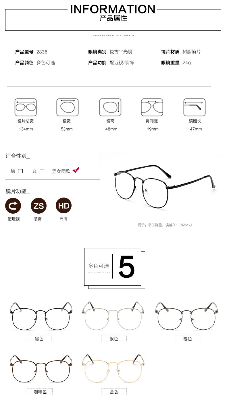 | Frame Color | Silver White,Gun color white film,Coffee White Slices,Golden white sheet,Black White,Gun color blue light-proof lens,Black anti-blue lens,Silver anti-blue lens,Brown anti-blue light lens,Gold anti-blue lens |
