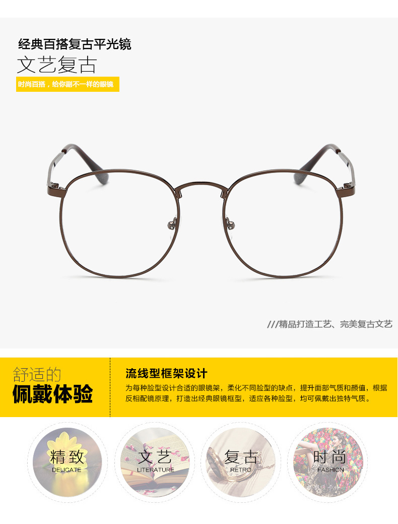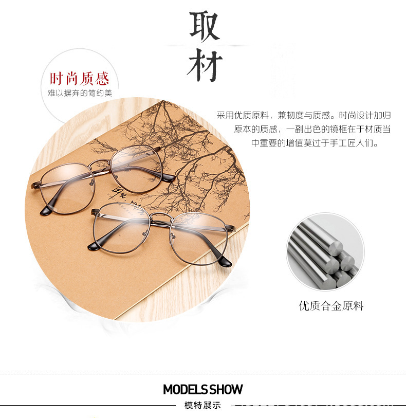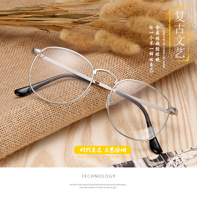 New 8810 Retro Metal Glasses Frame Anti-blue Light Student Flat Glasses Men's and Women's Glasses with Myopia Glasses Frame