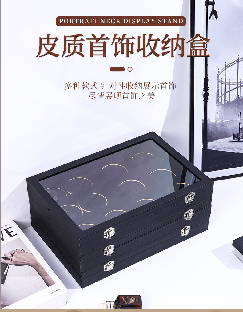 Large Black Leather Jewelry Box Jewelry Box Storage Box Jewelry Transparent Jewelry Box Display Box Necklace Box Ready for Sale