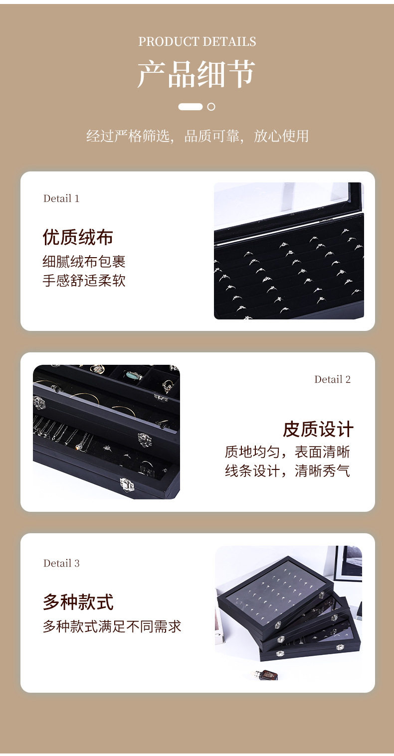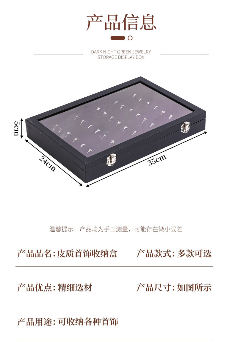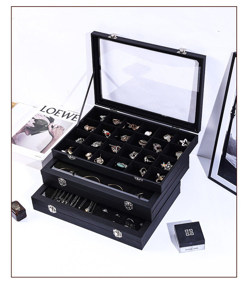 | Color | Large black leather empty box,Big black horizontal necklace box,Large black leather 12 grid,Large black leather necklace box,Large black leather 24 grid,Large black leather ring,Large black leather necklace + ring,Large black leather earring box,Big black hundred-digit ring box,Large linen necklace box,Large ice gray necklace box |