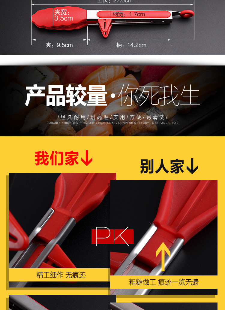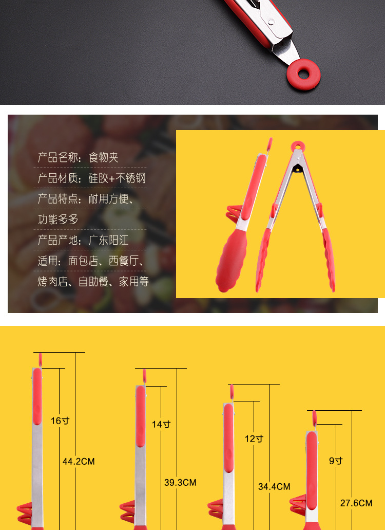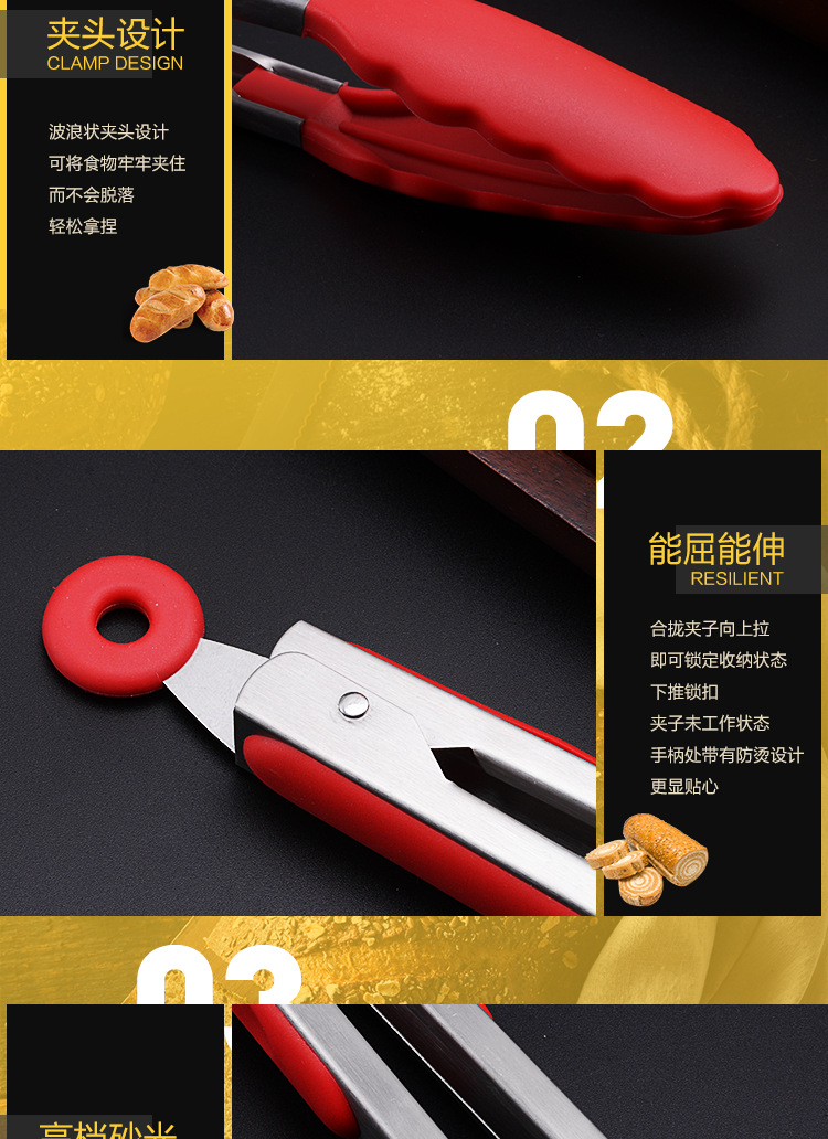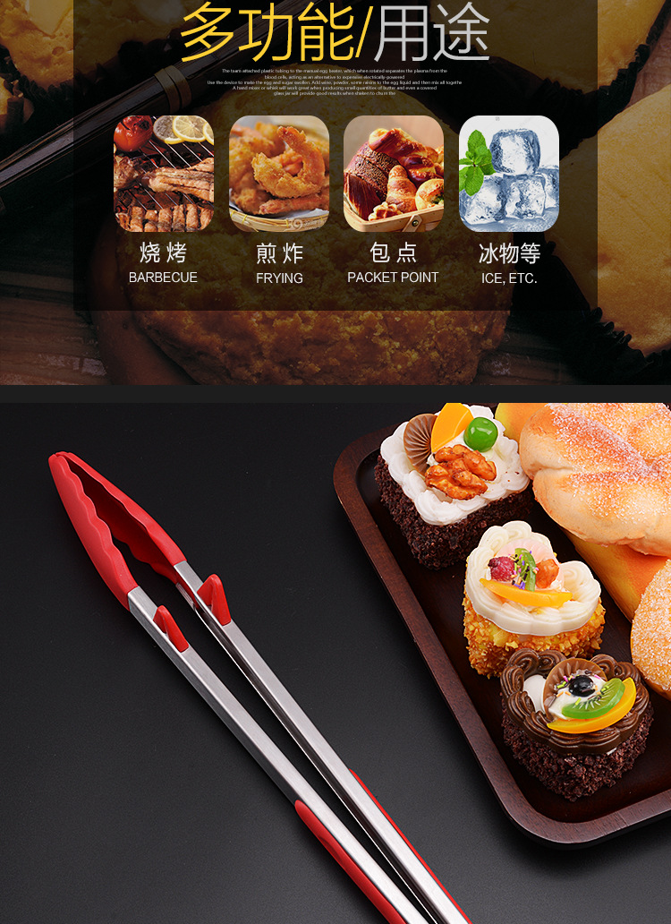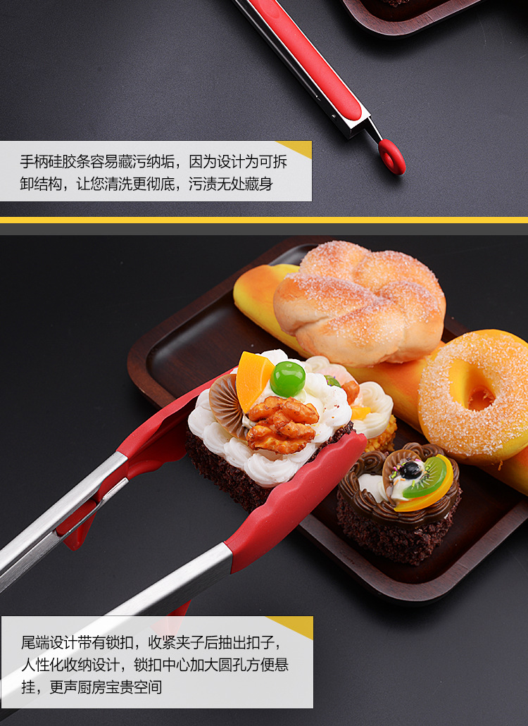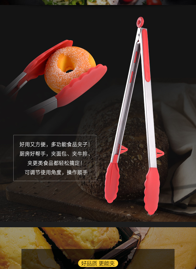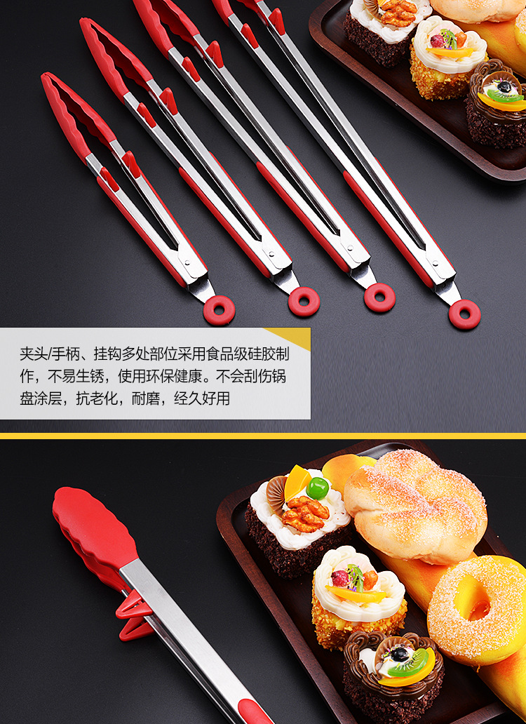 Stainless steel food clip lengthened silicone non-slip barbecue food clip bread cake steak clip baking tool