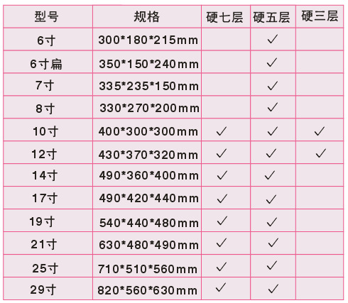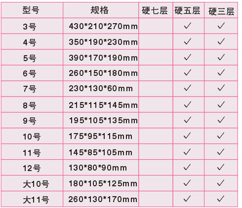 | Specifications and models | No. 1 (53*29*37)*five layers of hardening (no. 1),No. 1 (53*29*37)*five layers of extra hard eb |