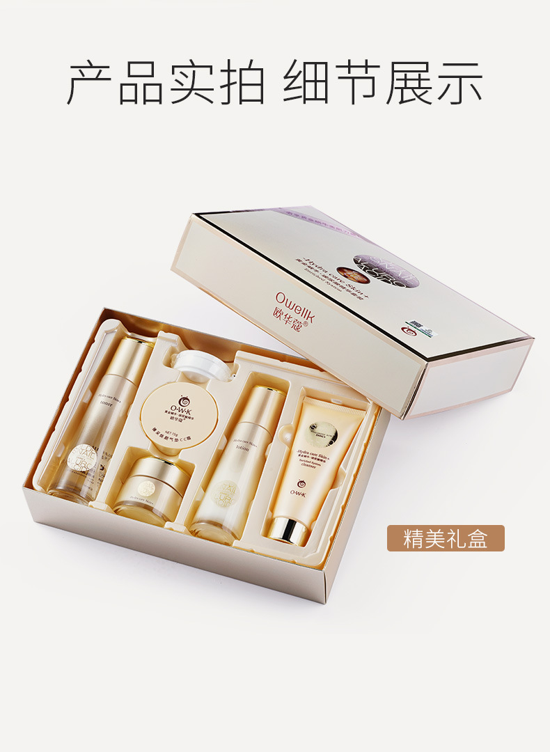 | Product specifications | Ouhuacom gold snail hyaluronic acid essence skin care six-piece set (hard box),Ouhuacom gold snail elastic moisturizing facial cleanser,Ouhuacom gold snail elastic moisturizing skin toner,Ouhuacom gold snail elastic moisturizing cream,Ouhuacom gold snail moisturizing cream,Ouhuacom gold snail Beauty BB cream,Ouhuacom gold snail moisturizing eye cream,Ouhuacom gold snail gold Moisturizing Essence |
