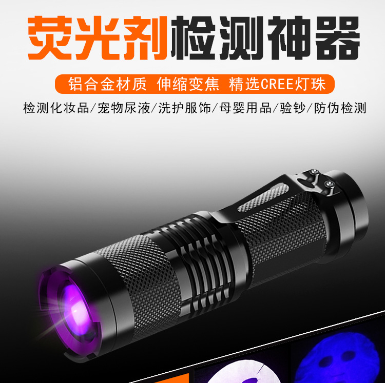 Factory Wholesale 365Nm Ultraviolet Flashlight for Currency Detection, Aluminum Alloy Pen Clip Uv Fluorescent Led Flashlight Handheld