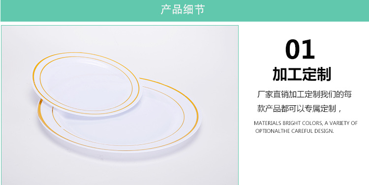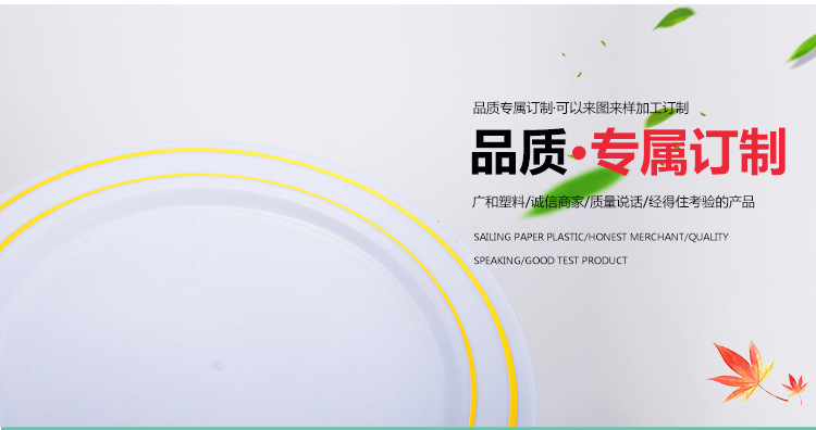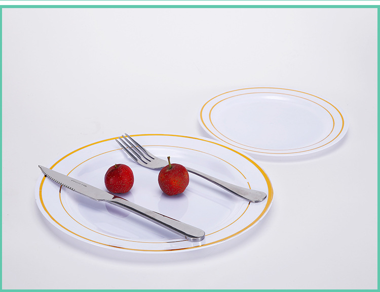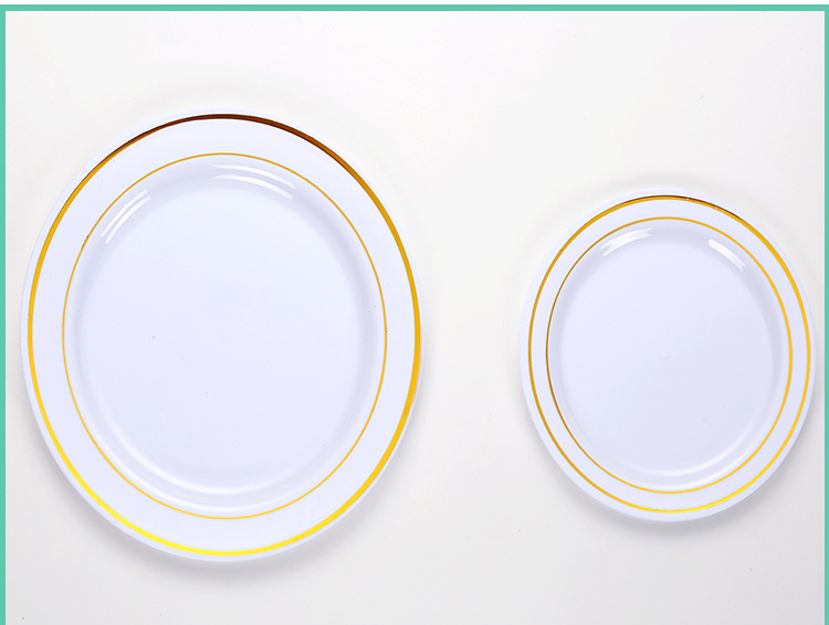 Manufacturer Wholesale 7.5inch White Gold-Stamped Round Ps Plastic Plates, Dinner Plates, Hot Pot Plates, Snack Fruit Plates for Commercial Use