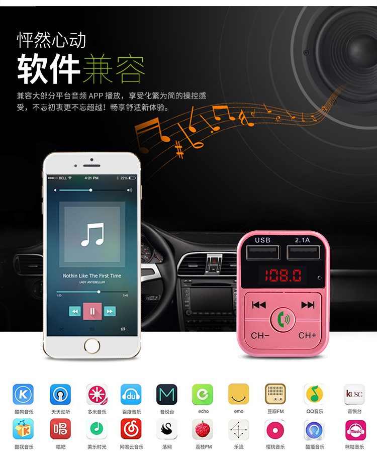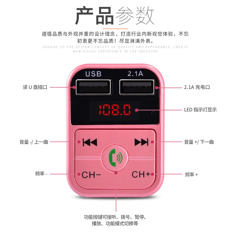 Cross-Border B2 Car Mp3 Bluetooth Player Bluetooth Hands-Free Calling Fm Card USB Car Charger Car Mp3