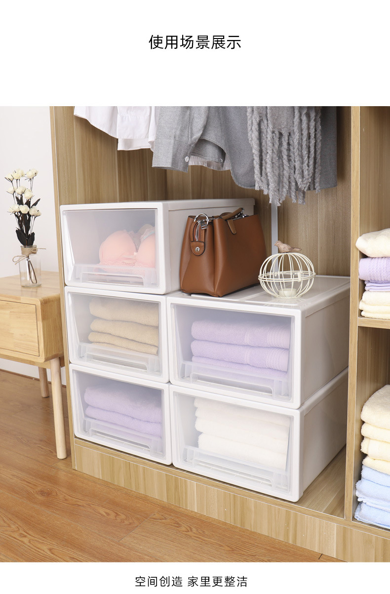 Factory Direct Thickened Storage Box PP Plastic Wardrobe Stackable Storage Box Drawer Transparent Storage Cabinet Enlarge