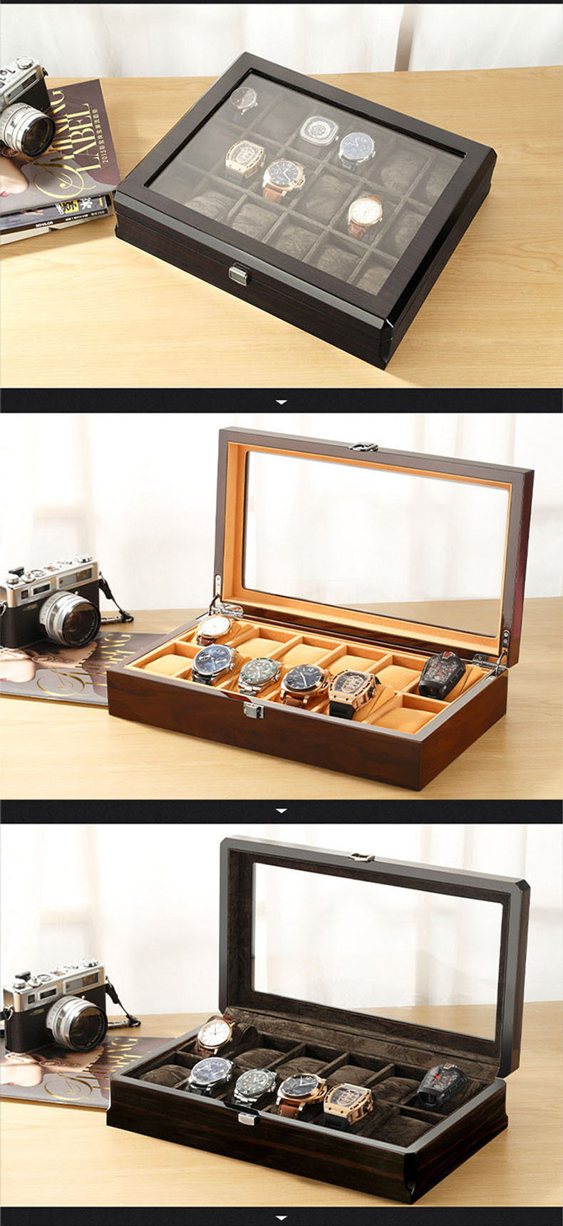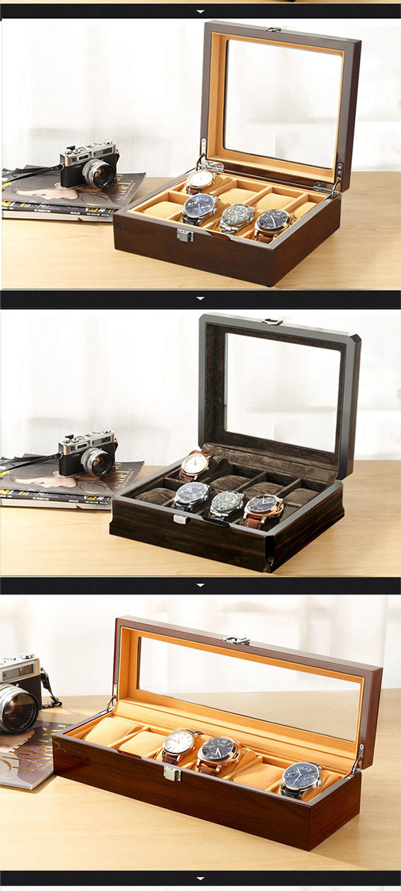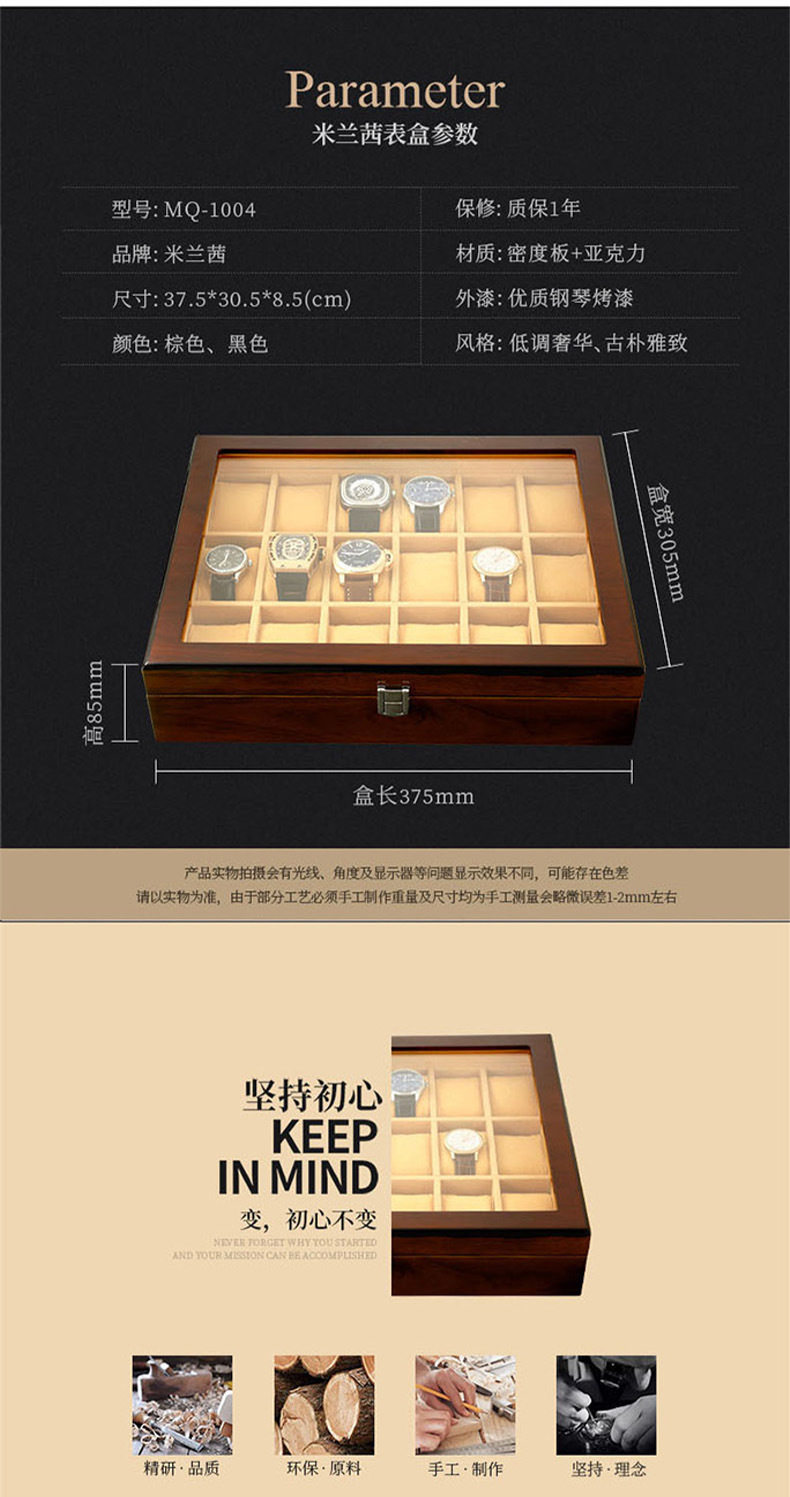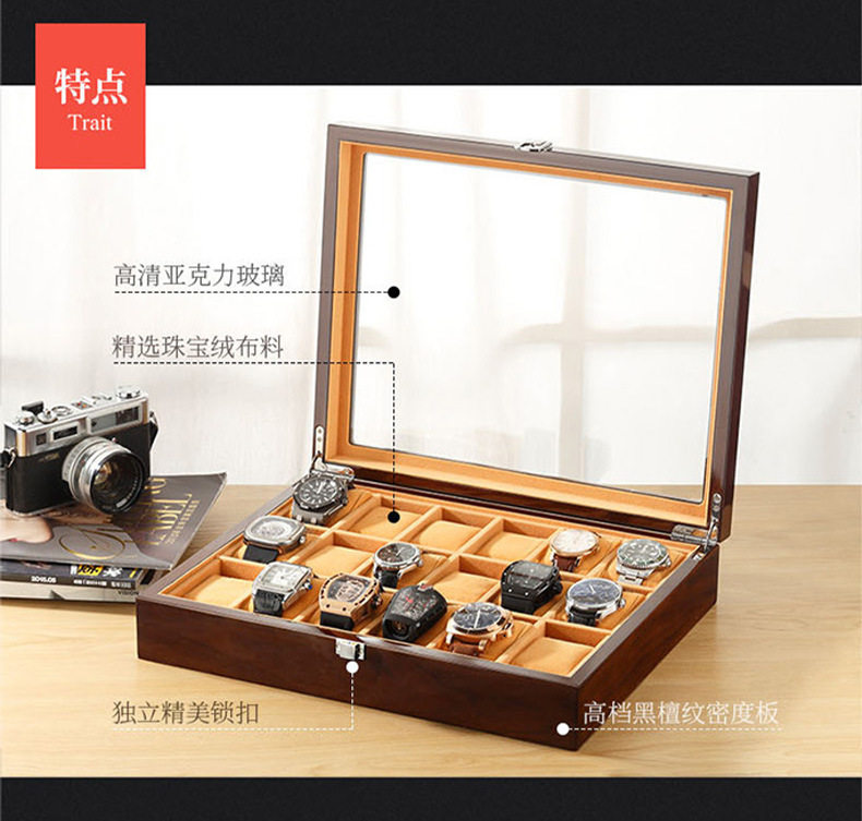 Watch Box Wooden Skylight Watch Box Wooden Jewelry Bracelet Bracelet Storage Box with Lock Watch Jewelry Display Box