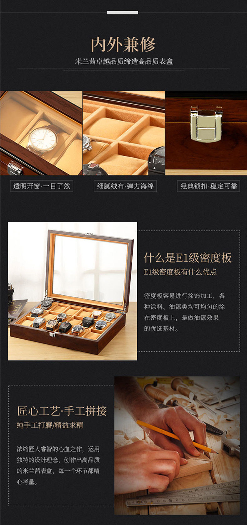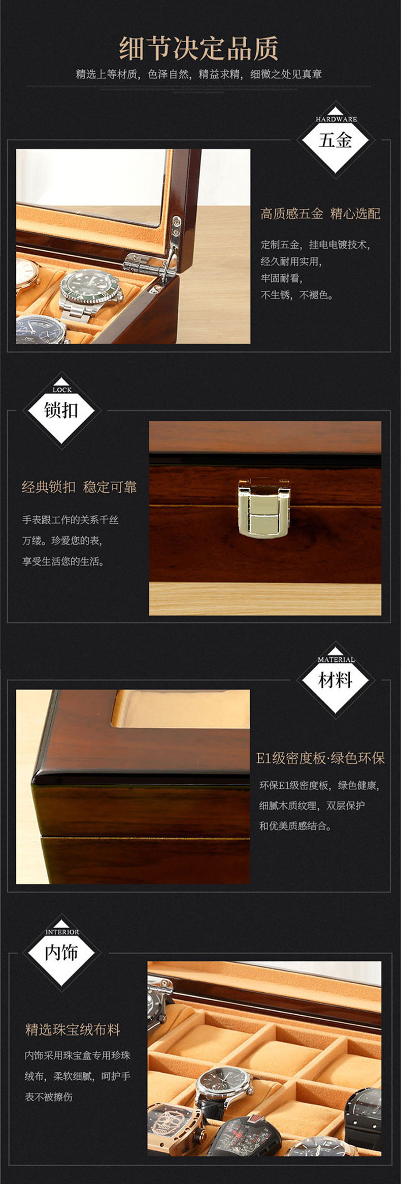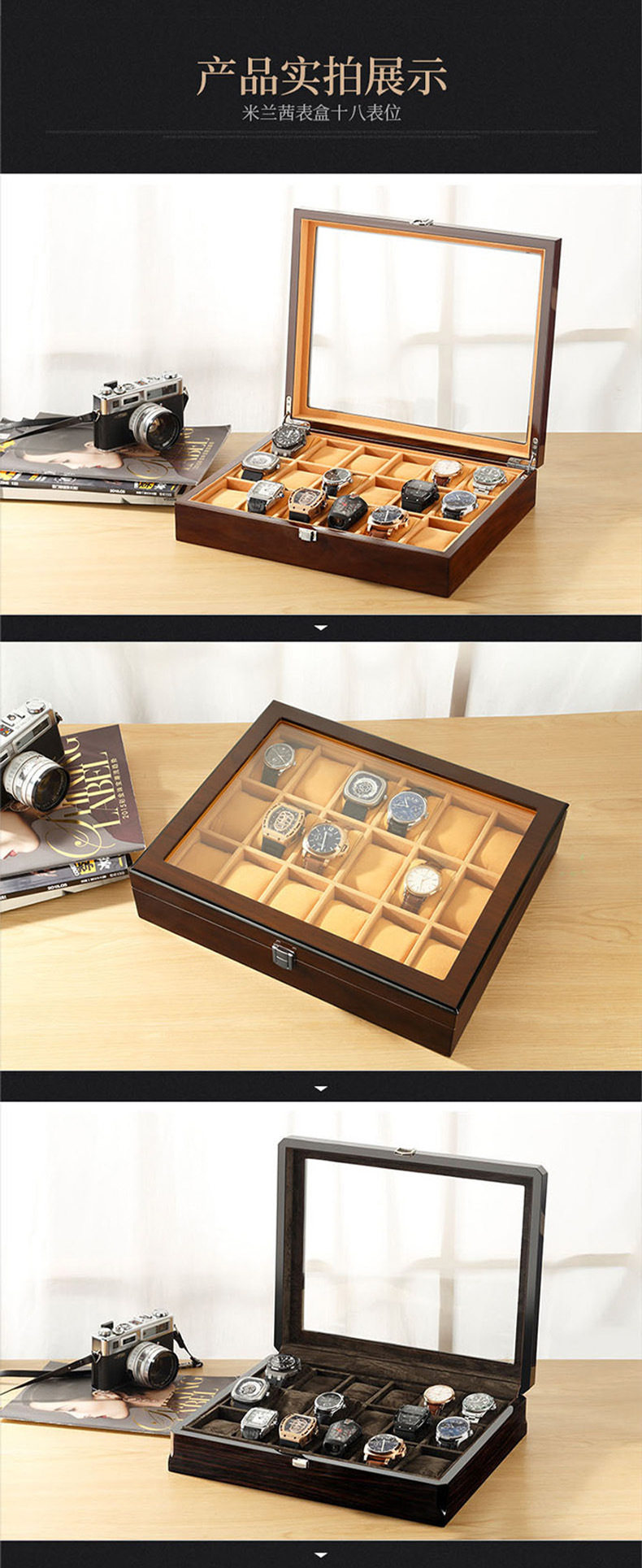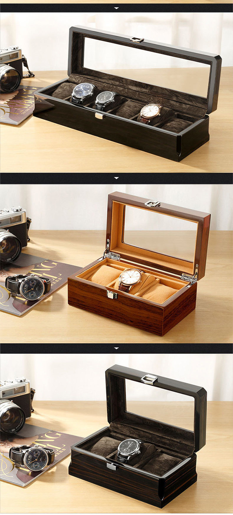 Watch Box Wooden Skylight Watch Box Wooden Jewelry Bracelet Bracelet Storage Box with Lock Watch Jewelry Display Box