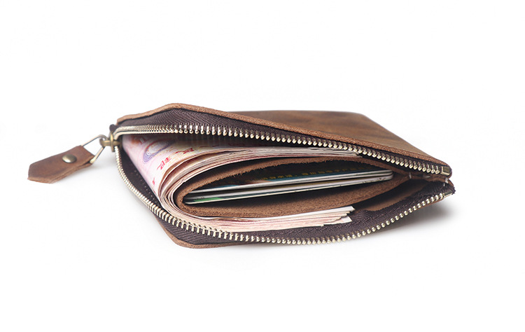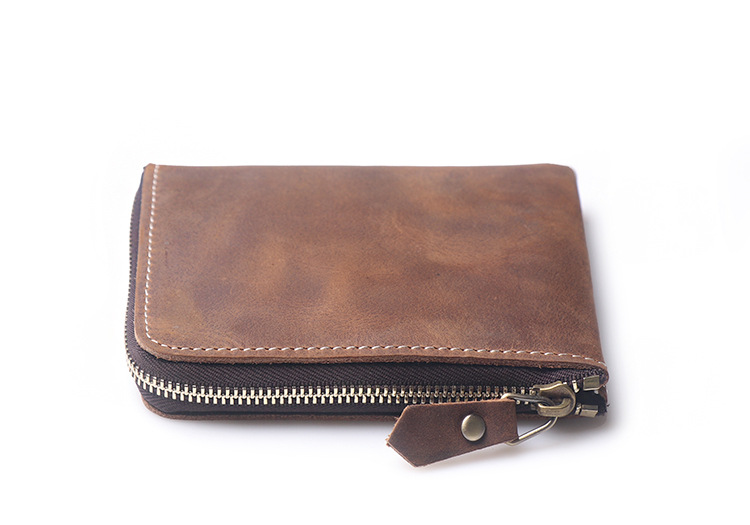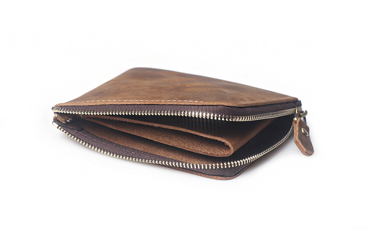 Luojia Factory New Top Layer Cowhide Men's Zipper Coin Purse Women's Short Wallet Genuine Leather Large Capacity Card Bag