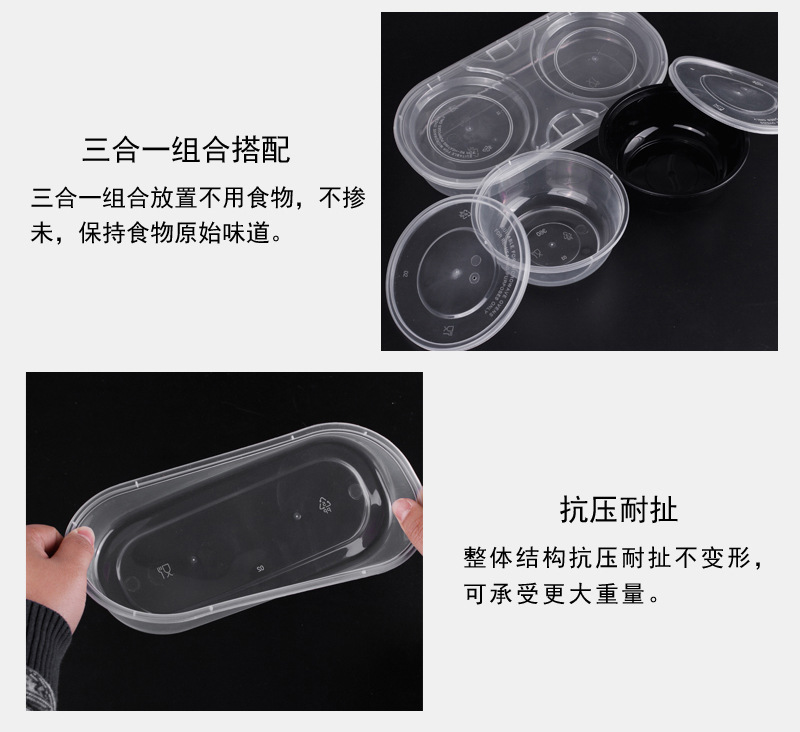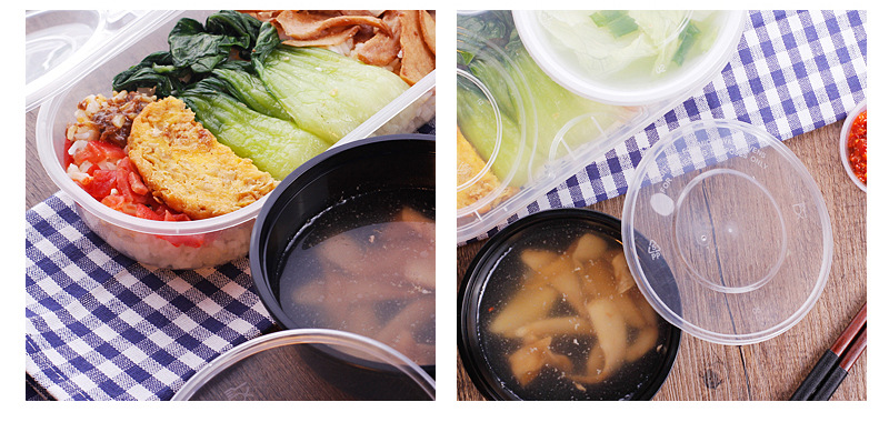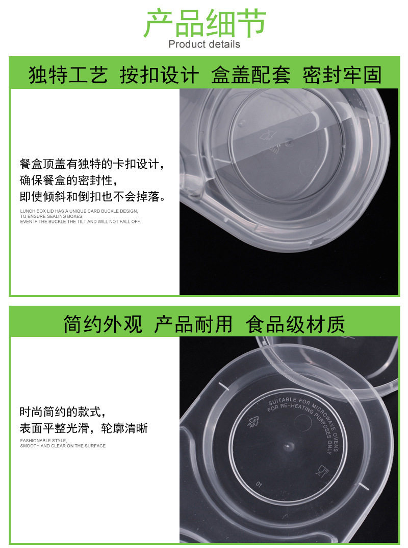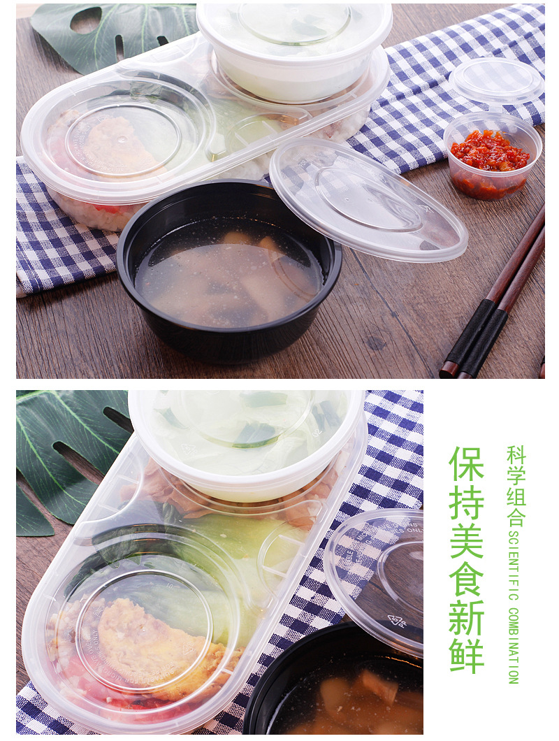 Jinlubao Disposable Lunch Box Takeaway Packaged Fast Food Combination Lunch Box Round Bowl Lunch Box with Lid Double Layer