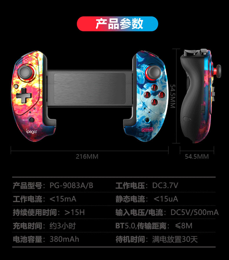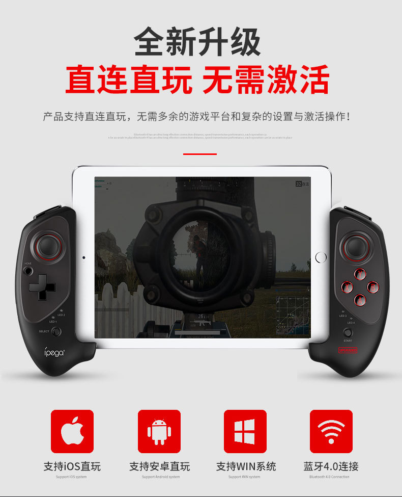 PG-9083S red bat mobile phone tablet pull telescopic Bluetooth gamepad eating chicken Android/ios direct connection direct play
