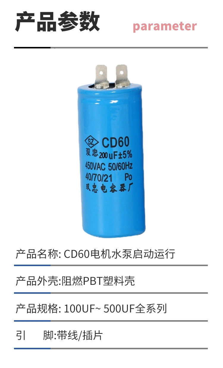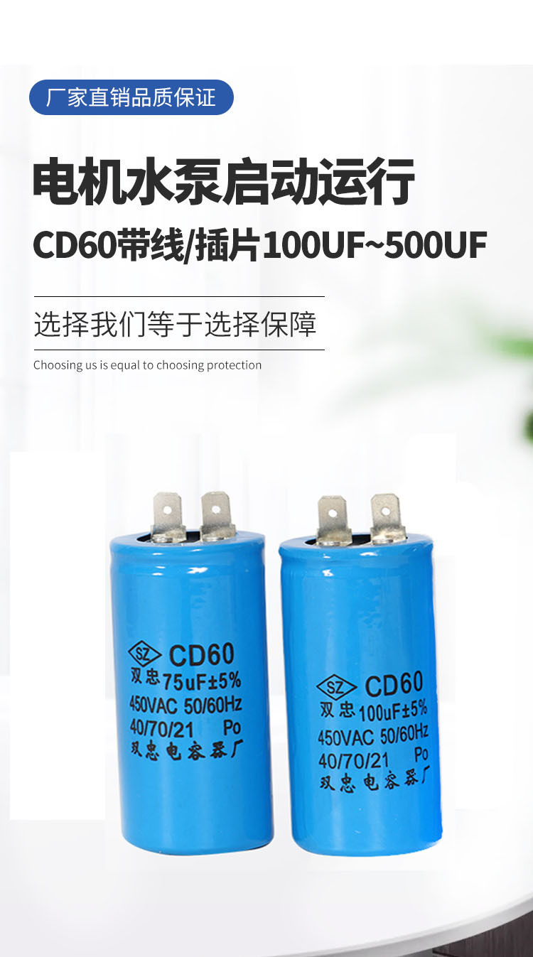 | Nominal capacity | Single insert 75uf,Single insert 100uf,Single insert 150uf,Single insert 200uf,Single insert 250uf,Single insert 300uf,Single insert 350uf,Single insert 400uf,Single insert 450uf,Single insert 500uf,Single insert 600uf,Single insert 700uf,Single insert 800uf,Single insert 900uf |