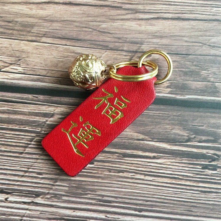 New Key Brand Top Layer Cowhide Car Keychain Accessories Creative Gift Brass Key Ring