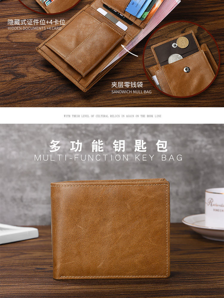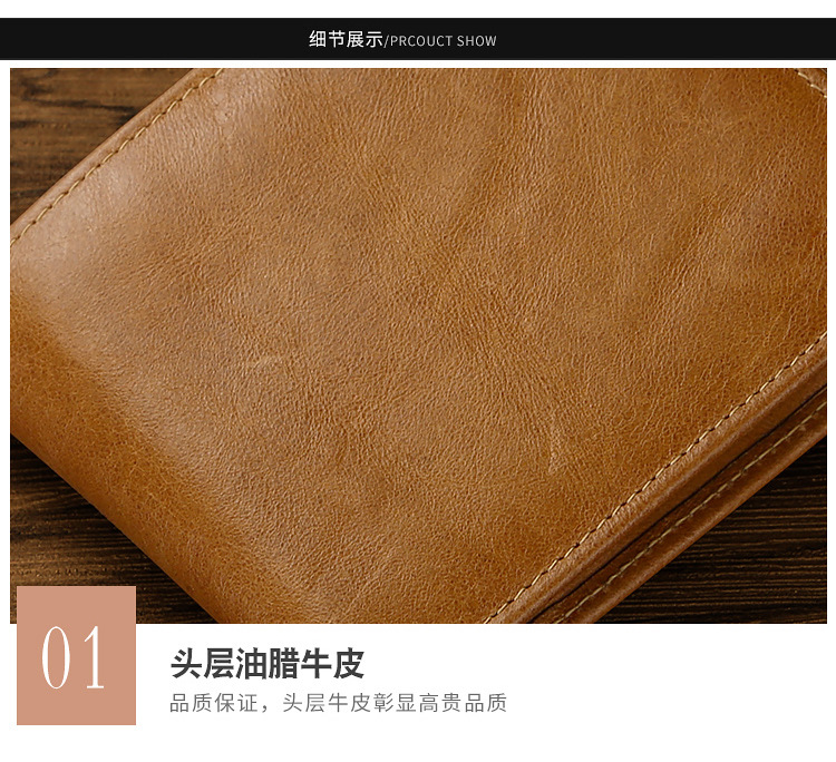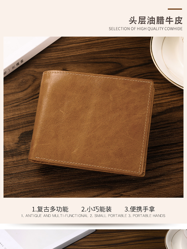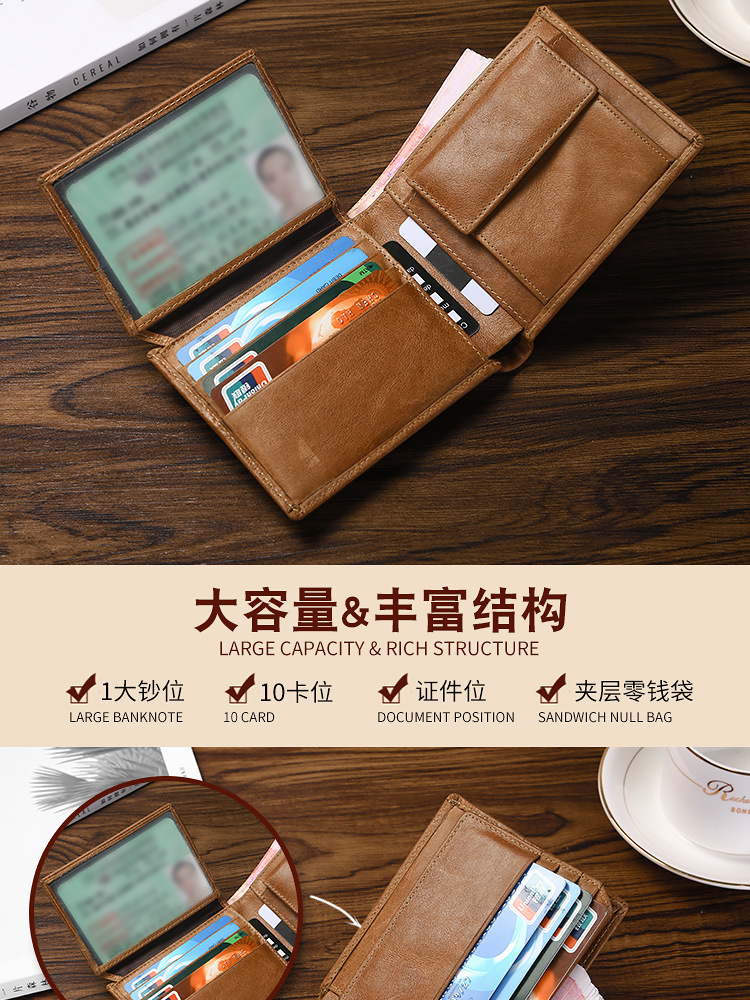 Cross-border Hot Selling Retro Cowhide Men's Wallet Multi-function Card Coin Coin Purse RFID Anti-theft European and American Wallet