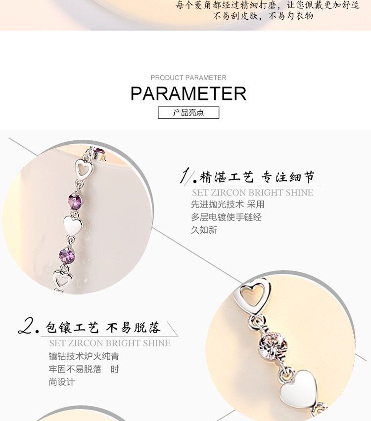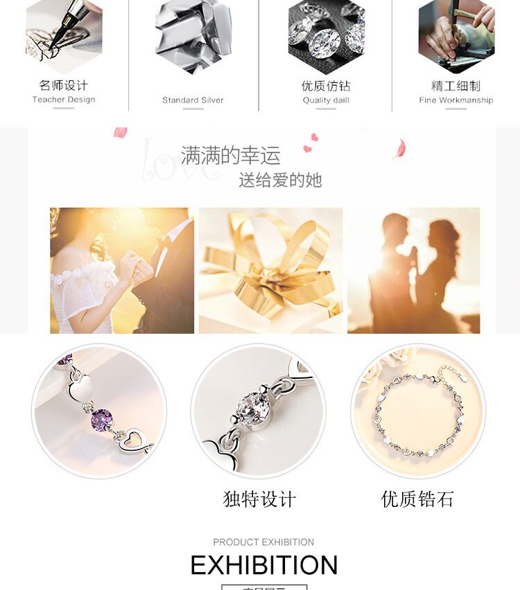 Weihua silver-plated hand jewelry love-shaped bracelet ladies zircon crystal brace jewelry