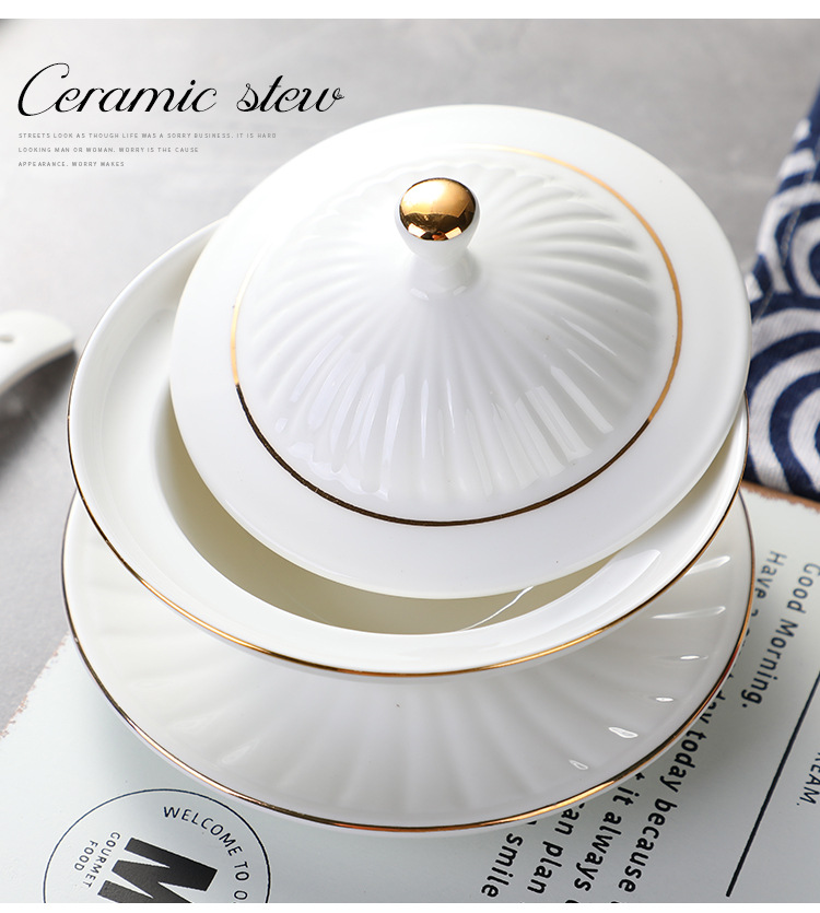 Desc Gold Bird's Nest Bowl Dessert Bowl High-end Hotel Bird's Nest Stew Cup Ceramic Bowl Restaurant Sugar Water Dessert Porridge Bowl Steamed Egg Bowl