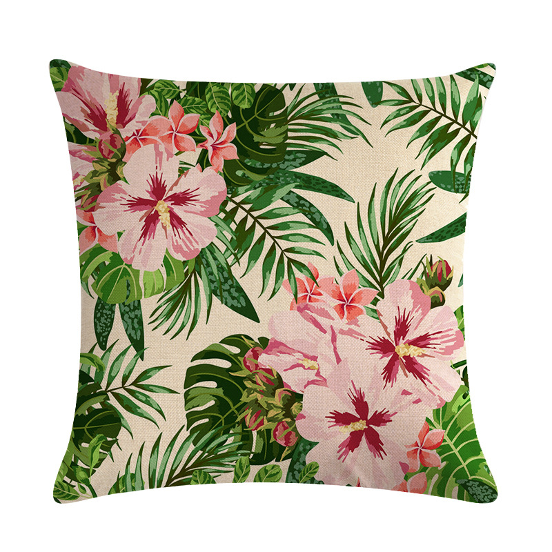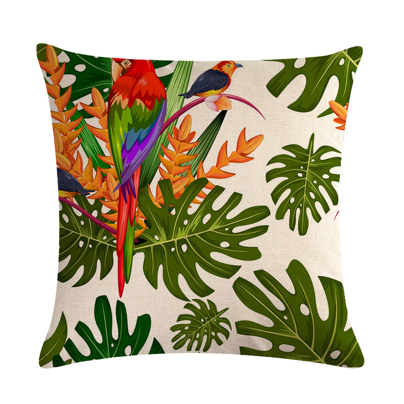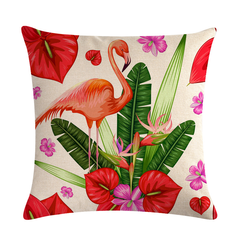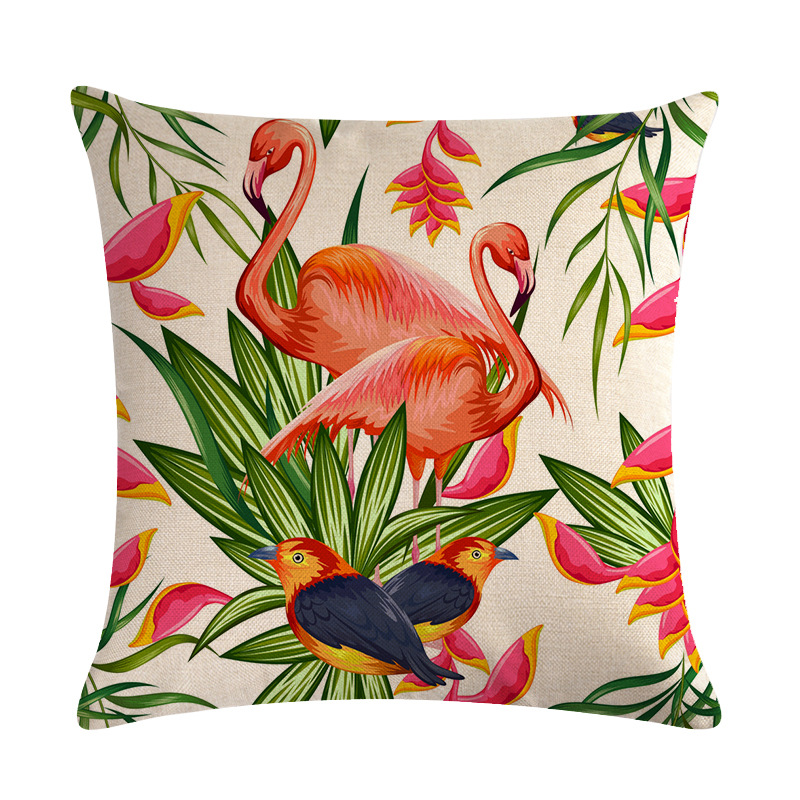 Cross-border Fresh Flamingo Green Leaf Series Linen Pillowcase Cushion Cover AliExpress Amazon eabyD346