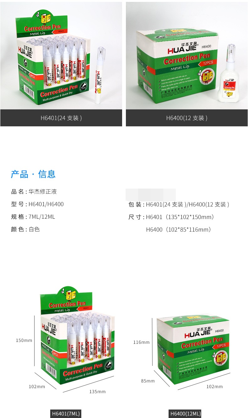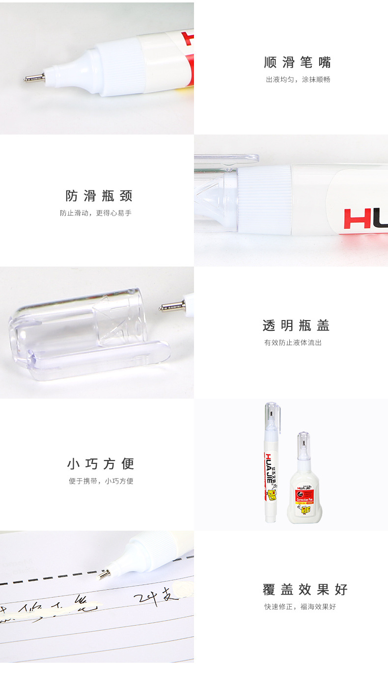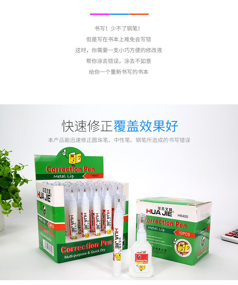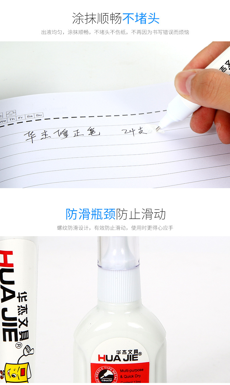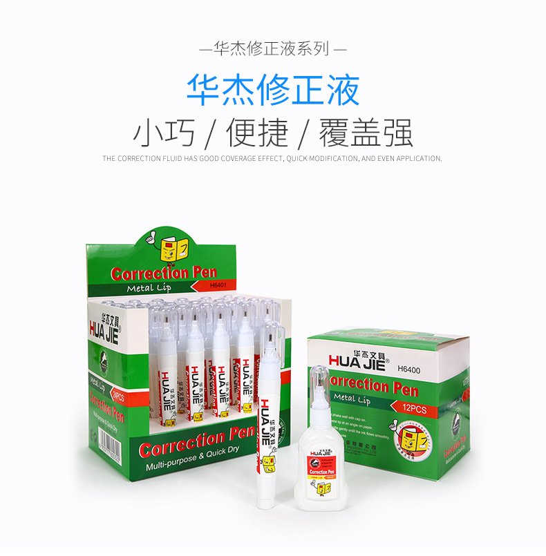 Huajie Manufacturer Wholesale 12ml Quick-Drying Correction Fluid Correction Fluid Student Correction Belt Student Supplies