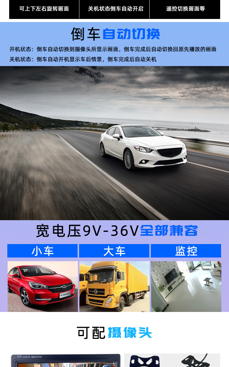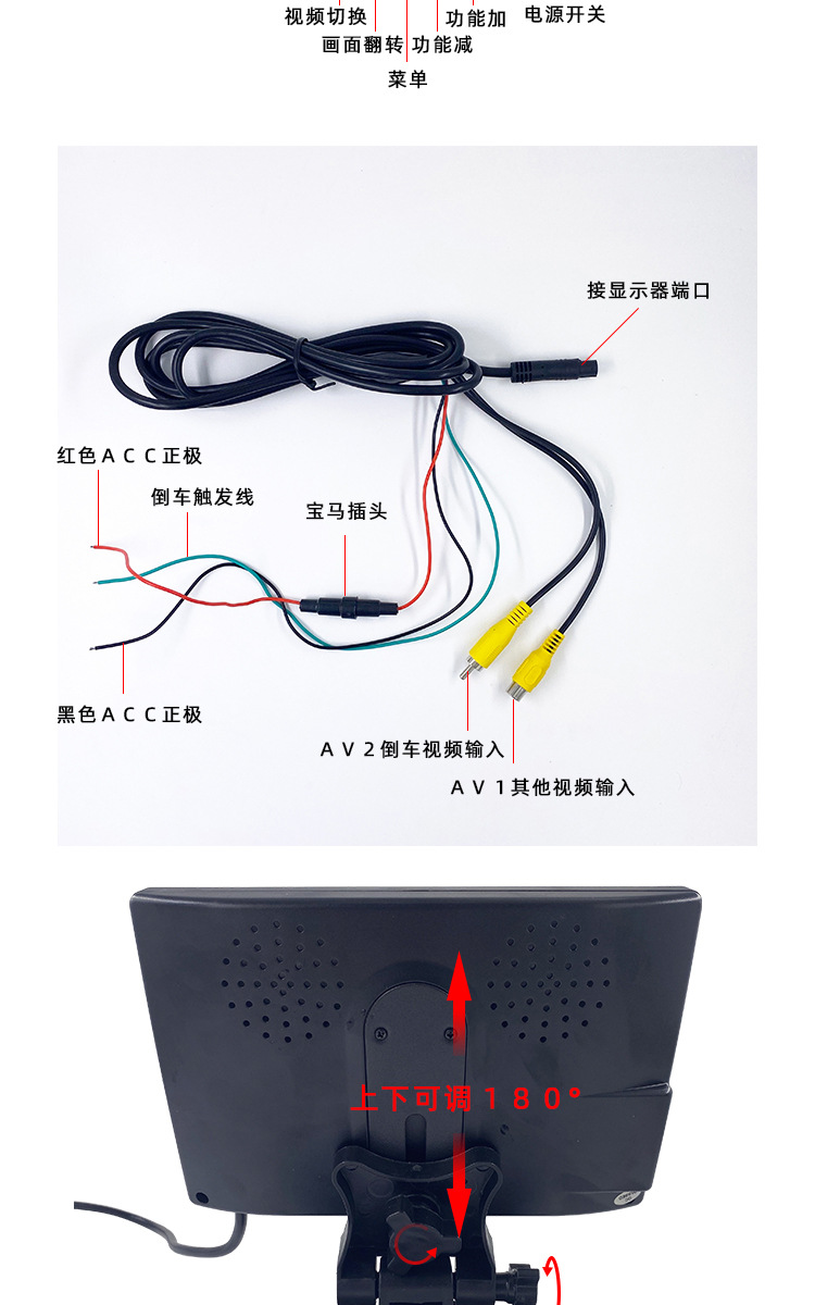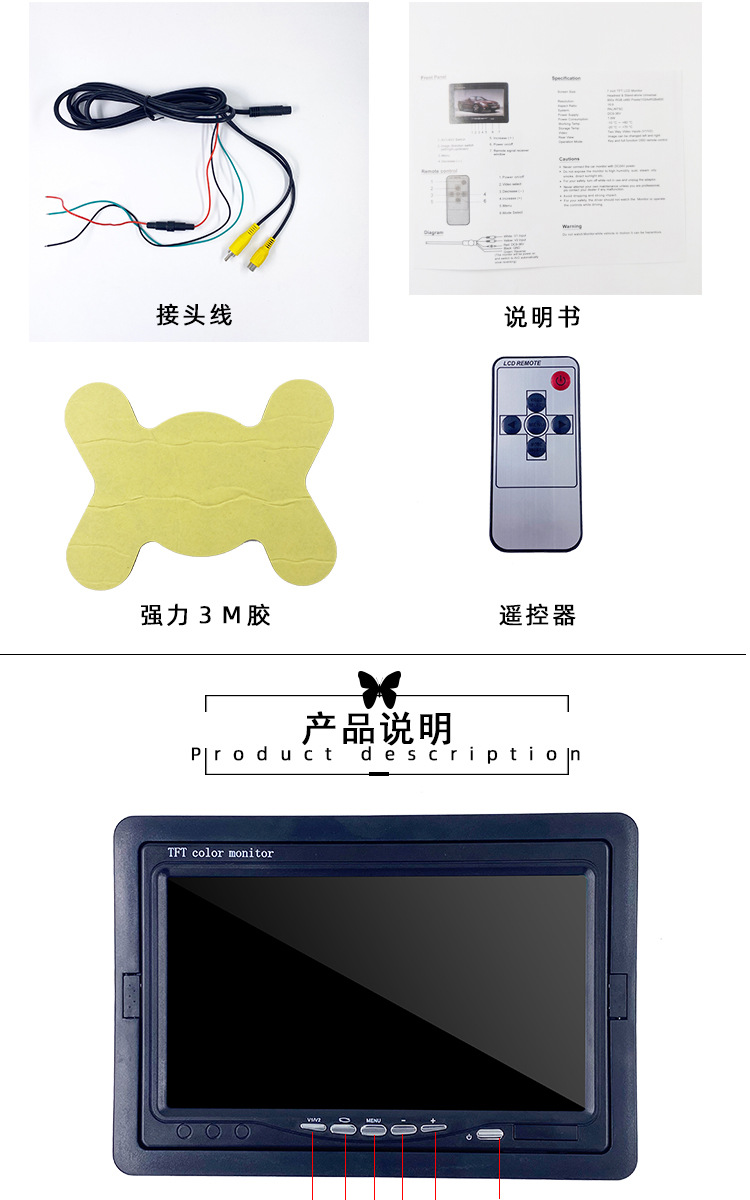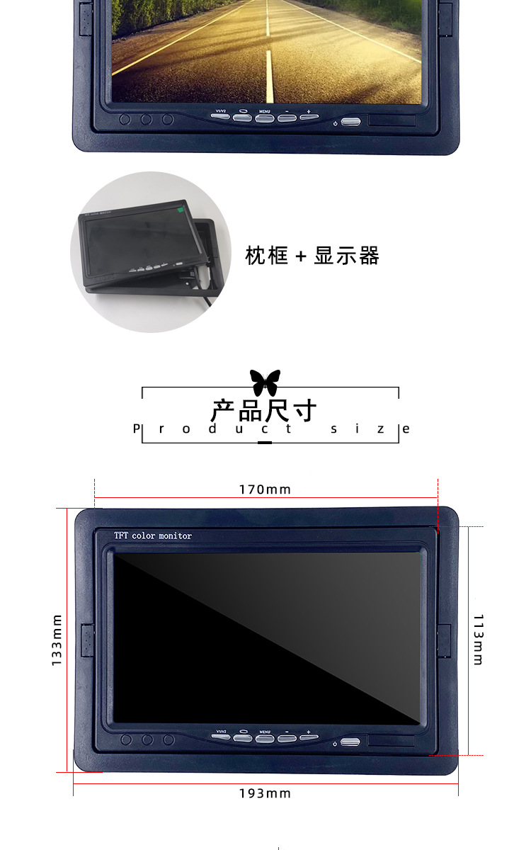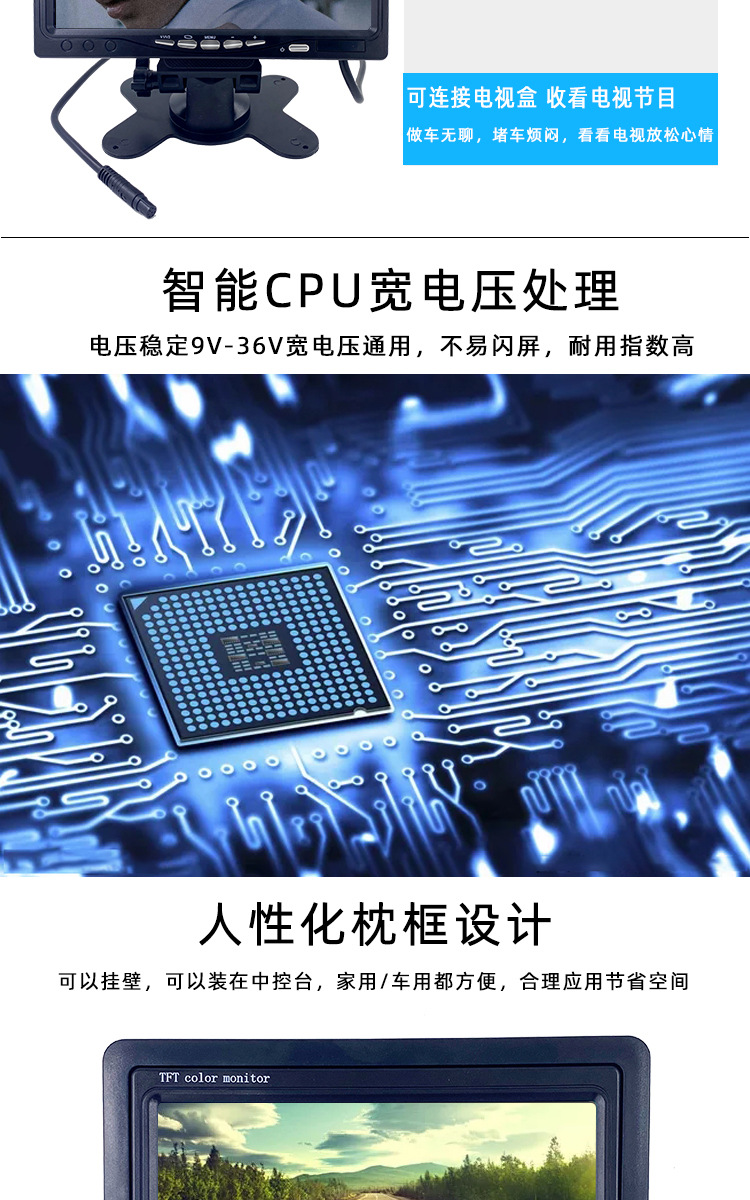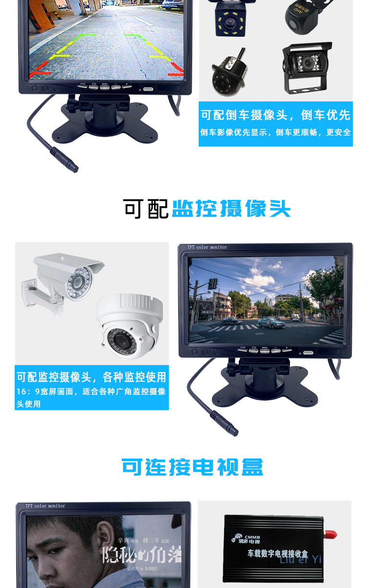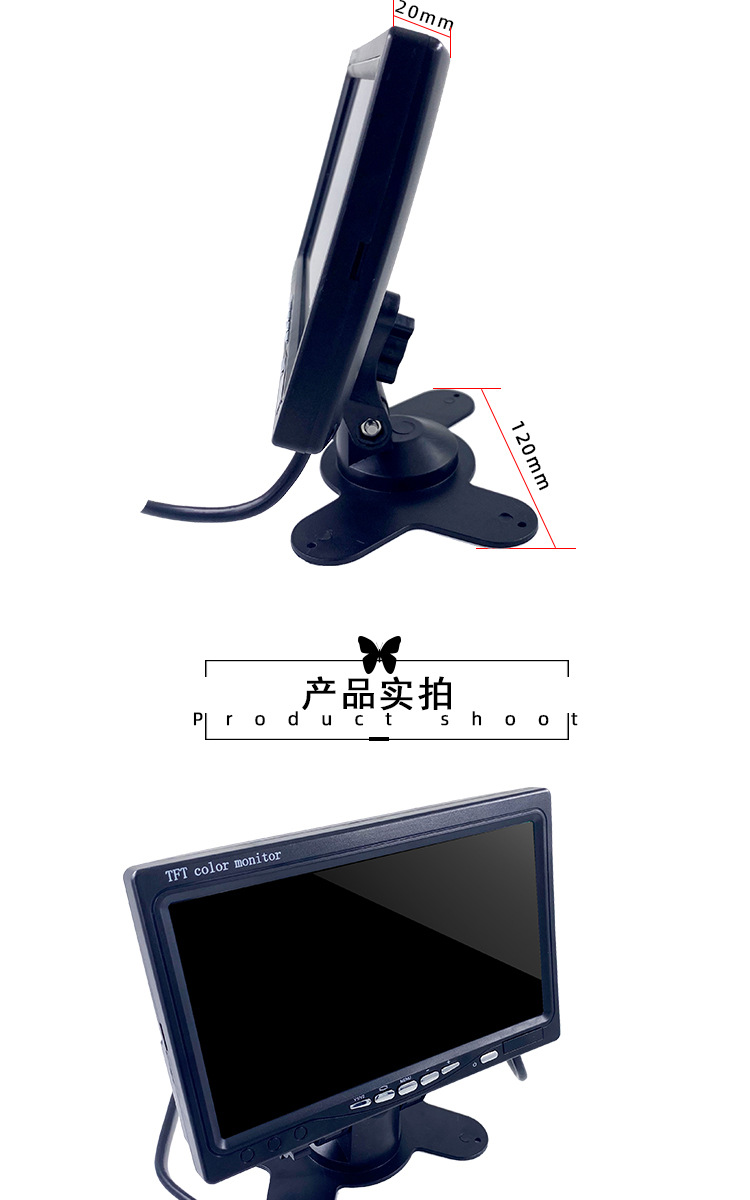 Truck 7inch Wide-Angle Lcd Display Reversing Image High-Definition Car Monitor Wide Voltage 12-36V