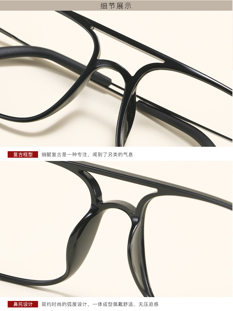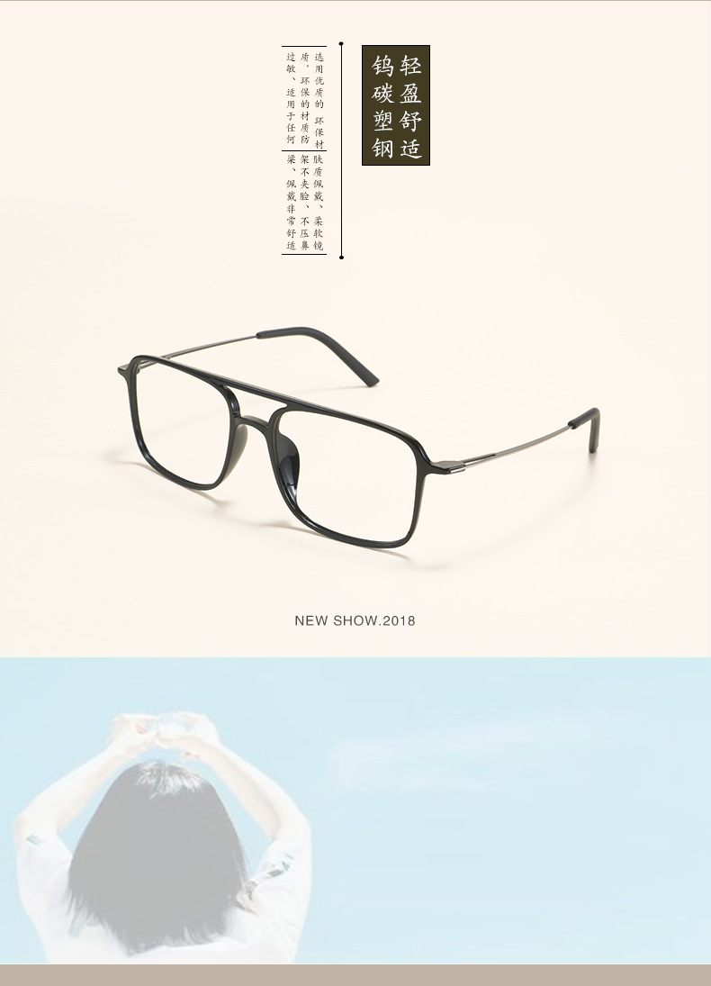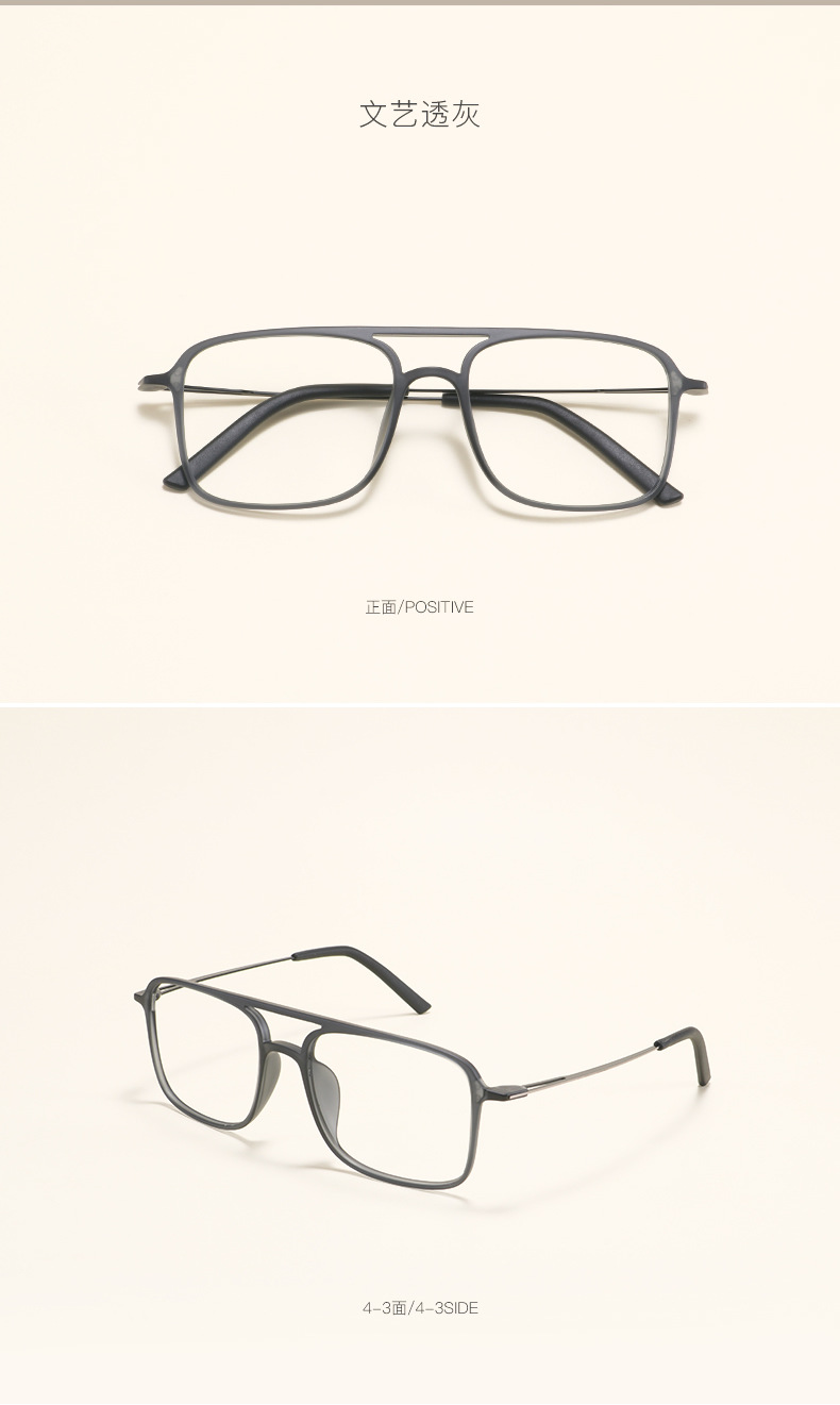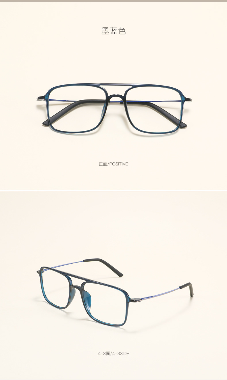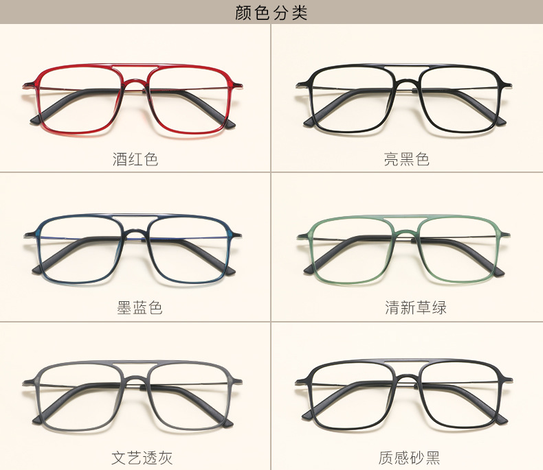 2235 Square Tungsten Carbon Plastic Steel Double Beam Glasses Frame for Men and Women Trendy Big Face Ultra Light Comfortable Flat Light Myopia Glasses Frame