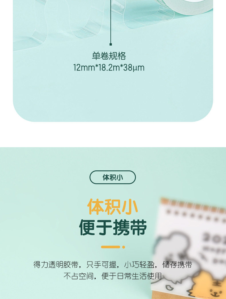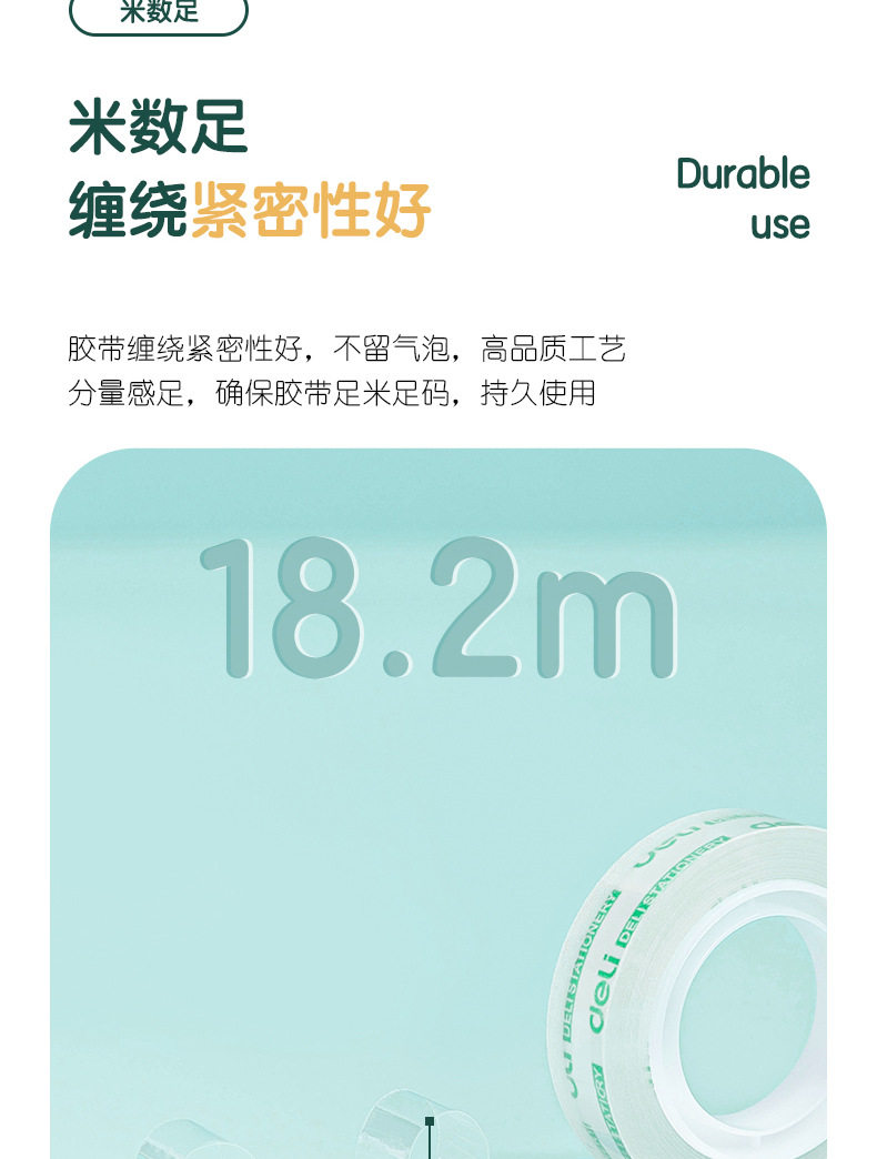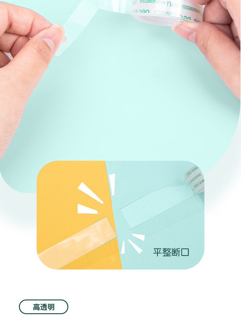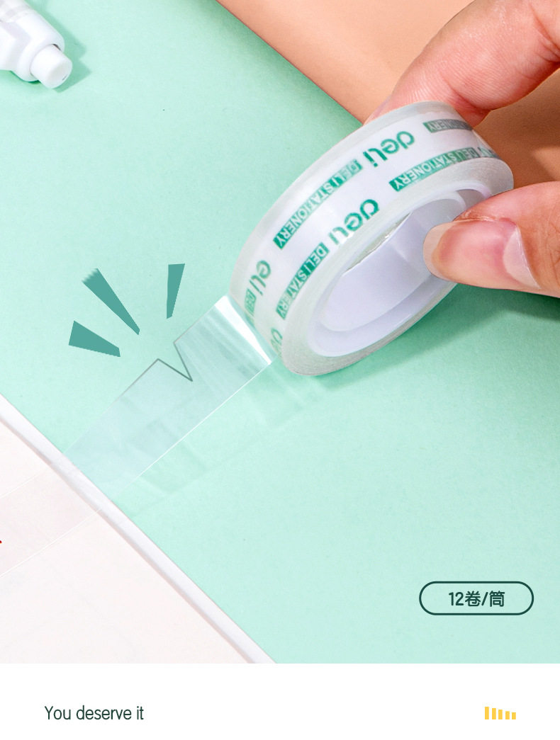 Deli 30014 high permeability and easy tear student stationery tape 1.2cm * 20Y transparent small tape tape 12 rolls/tube