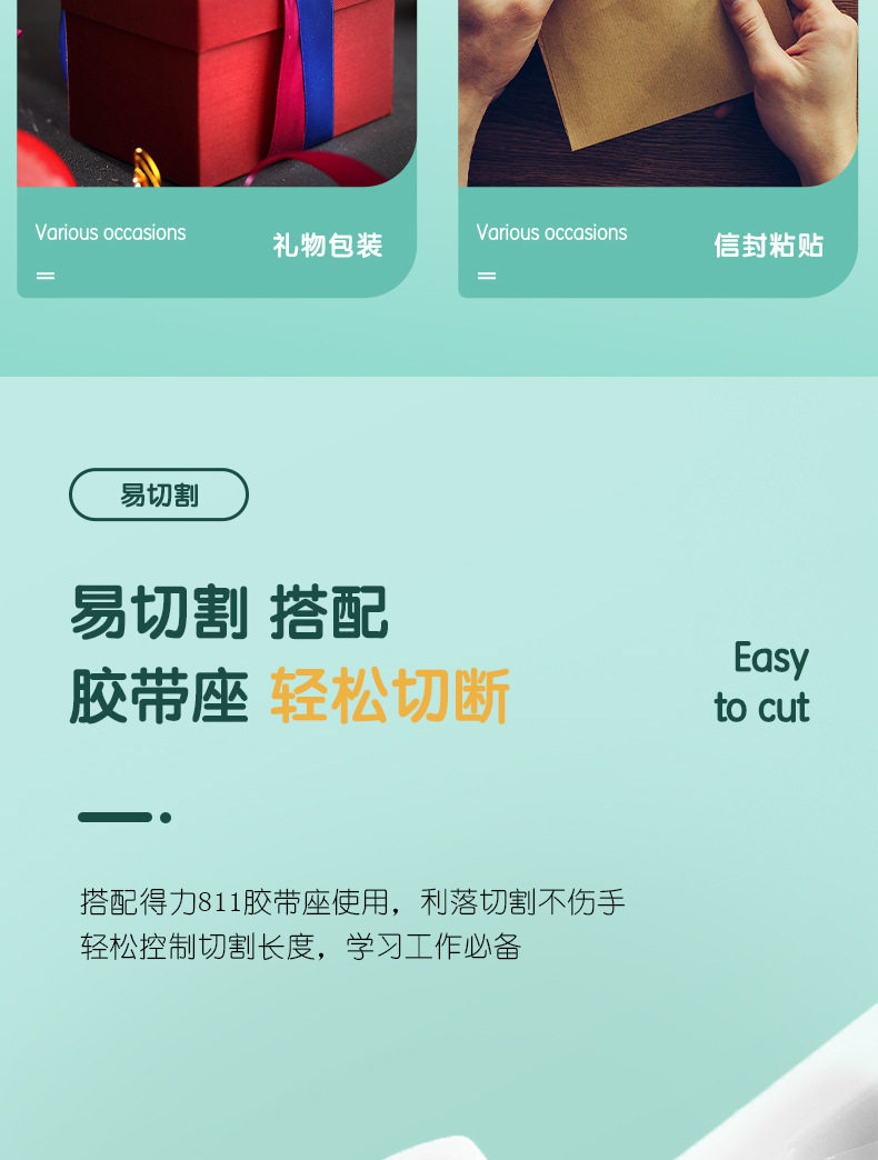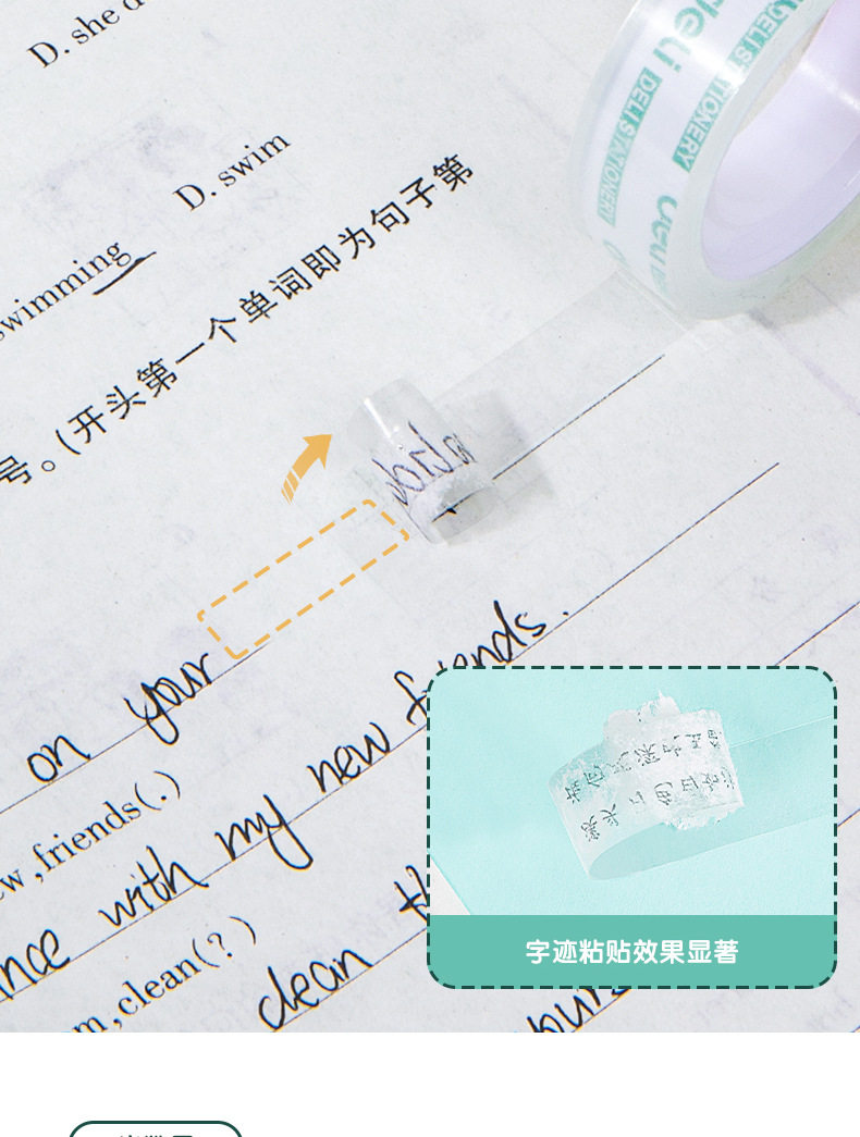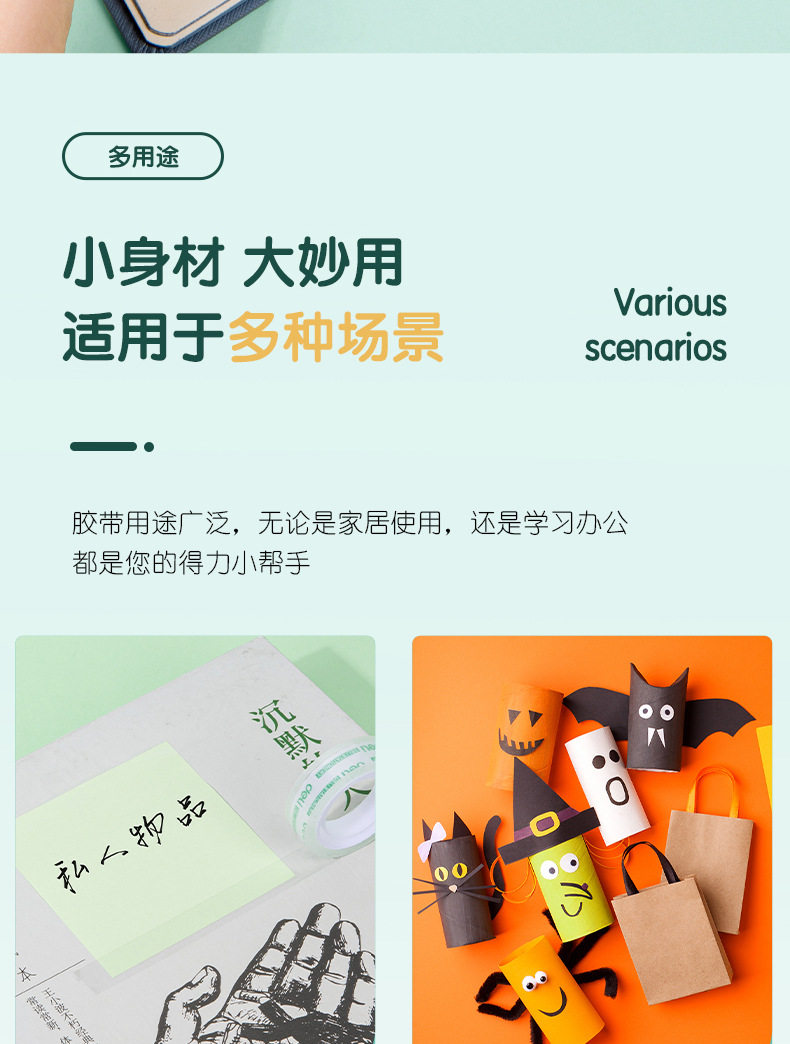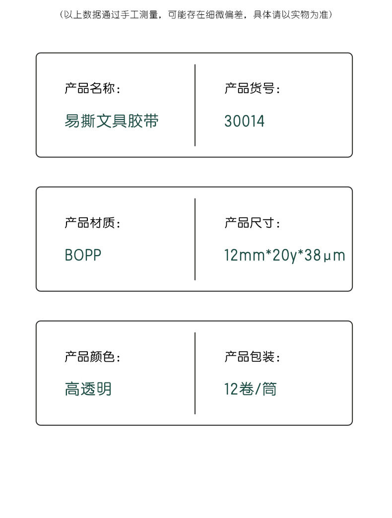 Deli 30014 high permeability and easy tear student stationery tape 1.2cm * 20Y transparent small tape tape 12 rolls/tube