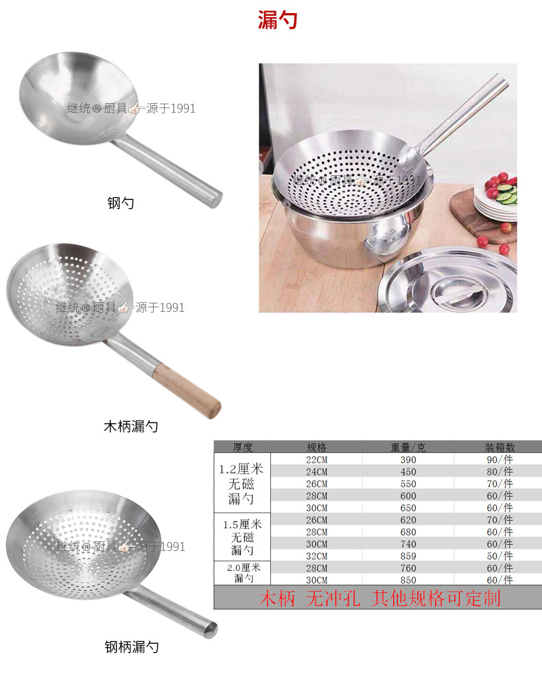 | Specifications | 22cm steel handle colander 1.2,24cm steel handle colander 1.2,26cm steel handle colander 1.2,28cm steel handle colander 1.2,30cm steel handle colander 1.2,26cm steel handle colander 1.5,28cm steel handle colander 1.5,30cm steel handle colander 1.5,32cm steel handle colander 1.5,28cm steel handle colander 2.0,30cm steel handle colander 2.0,22cm wooden handle colander 1.2,24cm wooden handle colander 1.2,26cm wooden handle colander 1.2,28cm wooden handle colander 1.2,30cm wooden handle colander 1.2,26cm wooden handle colander 1.5,28cm wooden handle colander 1.5,30cm wooden handle colander 1.5,32cm wooden handle colander 1.5,28cm wooden handle colander 2.0,30cm wooden handle colander 2.0 |