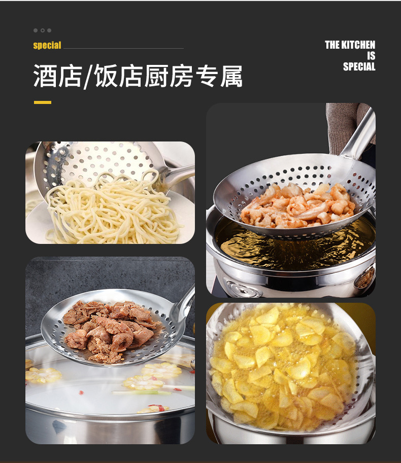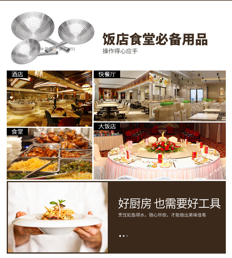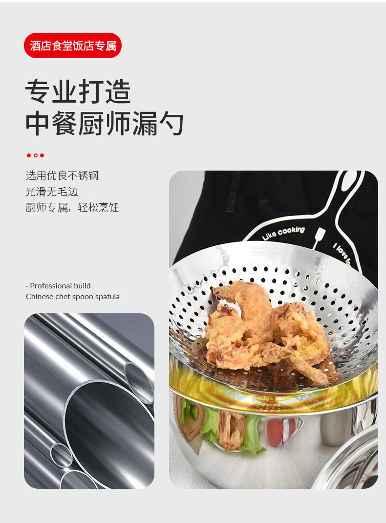 Colander Stainless Steel Wooden Handle Oil Drum Leakage Hotel Commercial Household Frying Oil Separator Kitchen Large Filter Fence