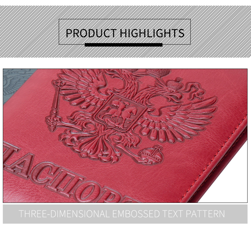 Russian National Emblem 64 Pattern Passport Holder Concave and Convex Embossed Export Passport Book Embossed Passport Bag Ticket Holder Card Holder