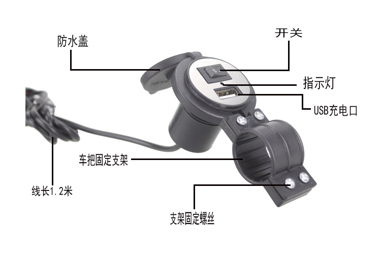 Electric Car Motorcycle USB Car Charger with Switch USB Scooter Modified Mobile Phone Charger 12V