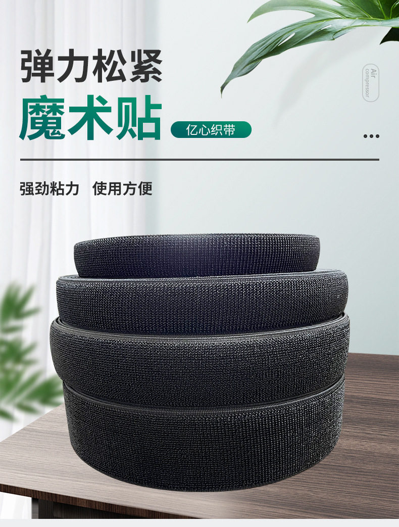 Black Nylon Elastic Band with Velcro Fastener, Sports Tie Strap, Non-Pilling Hook and Loop Tape, High Elasticity, Self-Adhesive