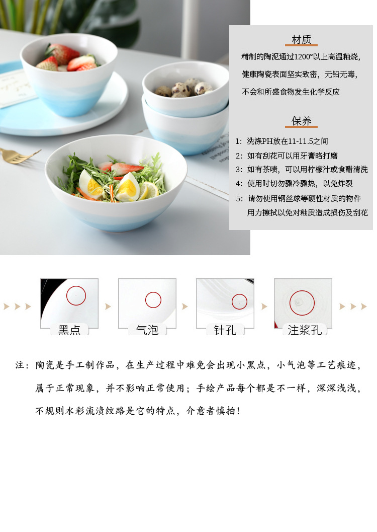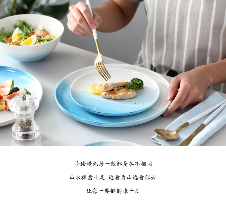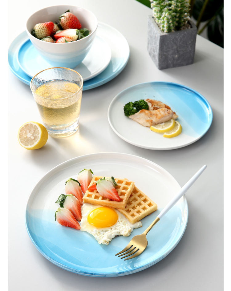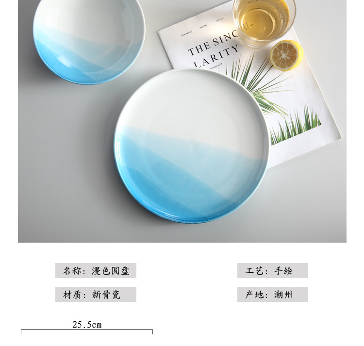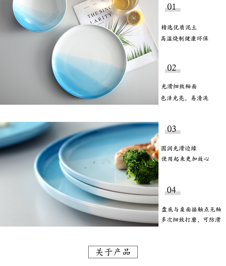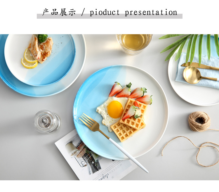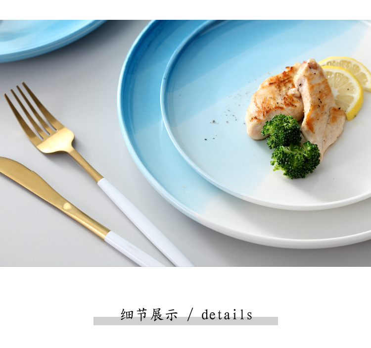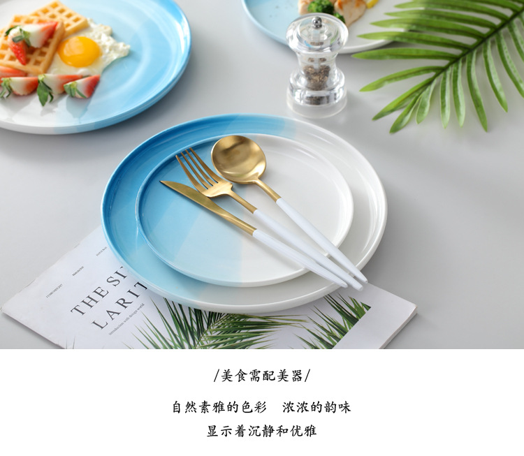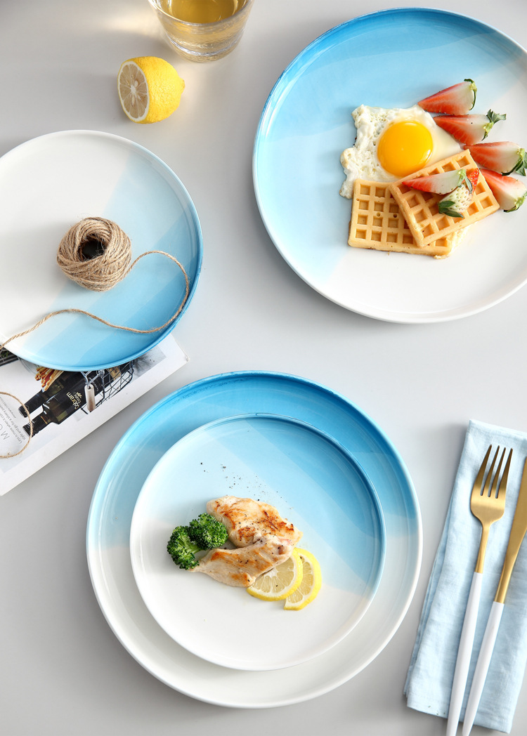 European Style Restaurant Western Food Plate Steak Plate Spaghetti Plate Blue Round Household Ceramic Plate Plate Flat Plate Tray